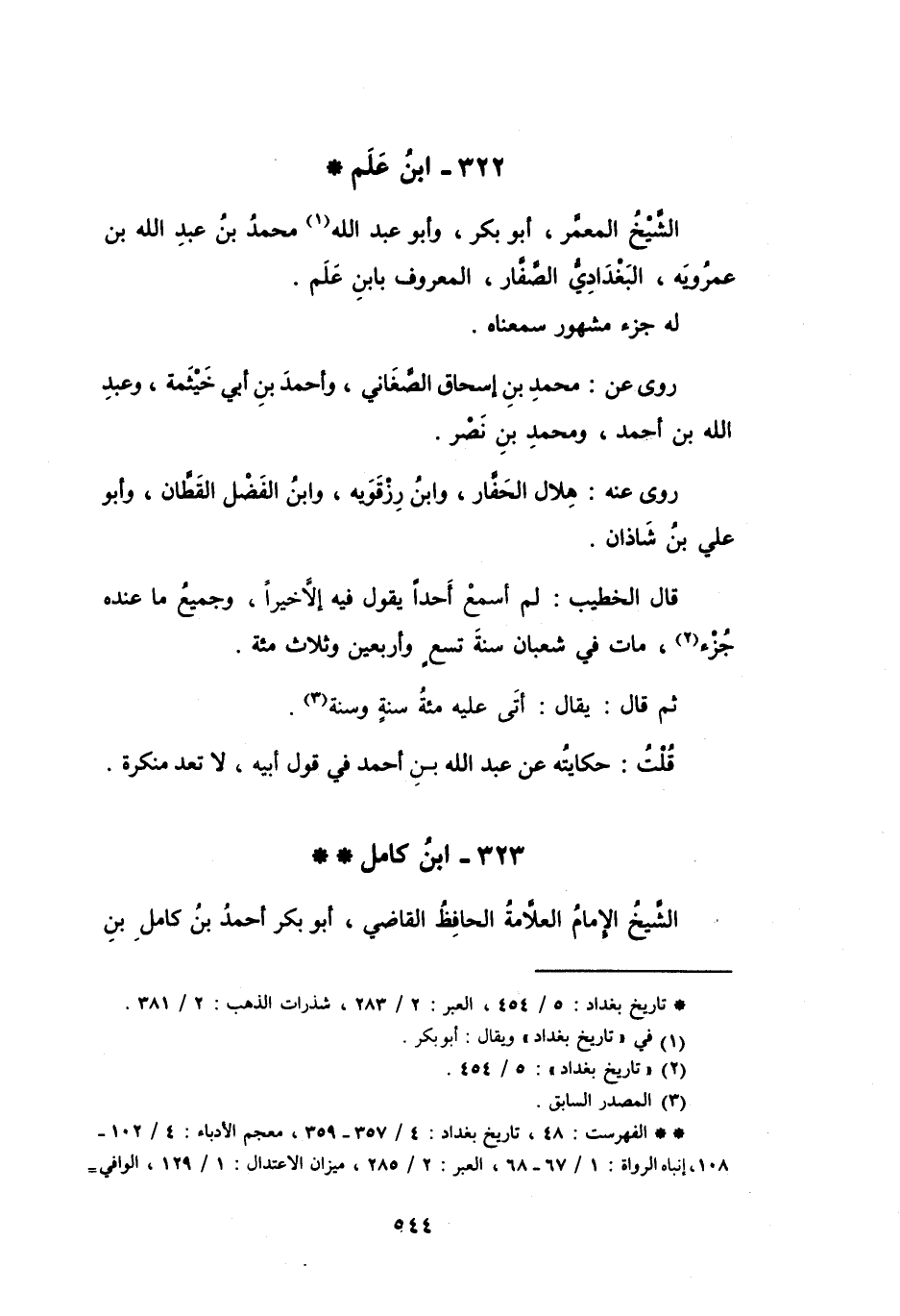 323 - ابْنُ كَامِلٍ أَحْمَدُ بنُ كَامِلِ بنِ خَلَفٍ البَغْدَادِيُّ **
