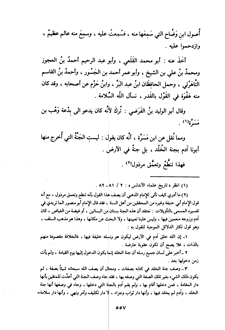 لَيْسَتِ الجَنَّةُ الَّتِي أُخرج مِنْهَا أَبونَا آدم بجنَة الخُلْد، بَلْ جنَةٌ فِي الأَرْض. فهَذَا تنطُّعٌ وَتعمُّق مَرْذُول (2) .