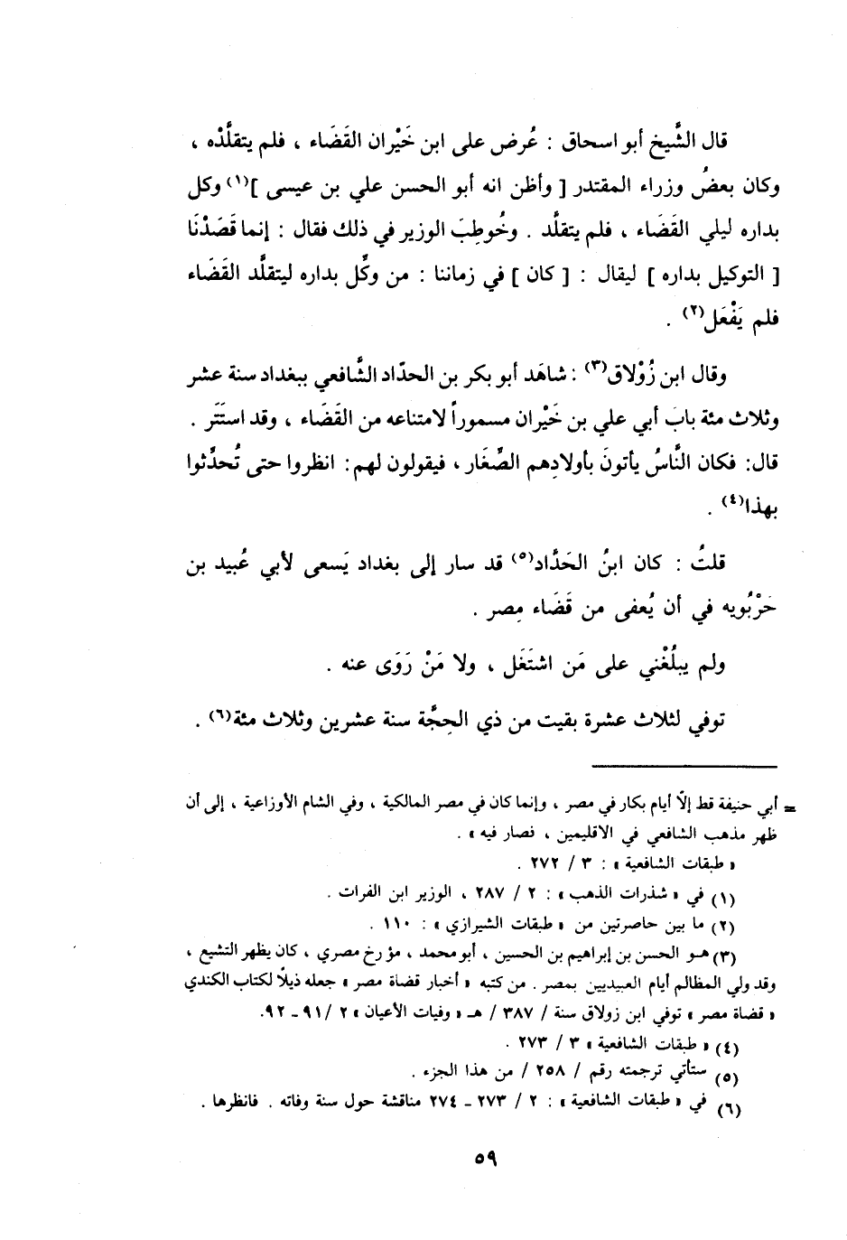 قُلْتُ: كَانَ ابْنُ الحَدَّاد (5) قَدْ سَارَ إِلَى بَغْدَادَ يَسْعَى لأَبِي عُبَيْد بن حَرْبُويه فِي أَنْ يُعفَى مِنْ قَضَاء مِصْر.