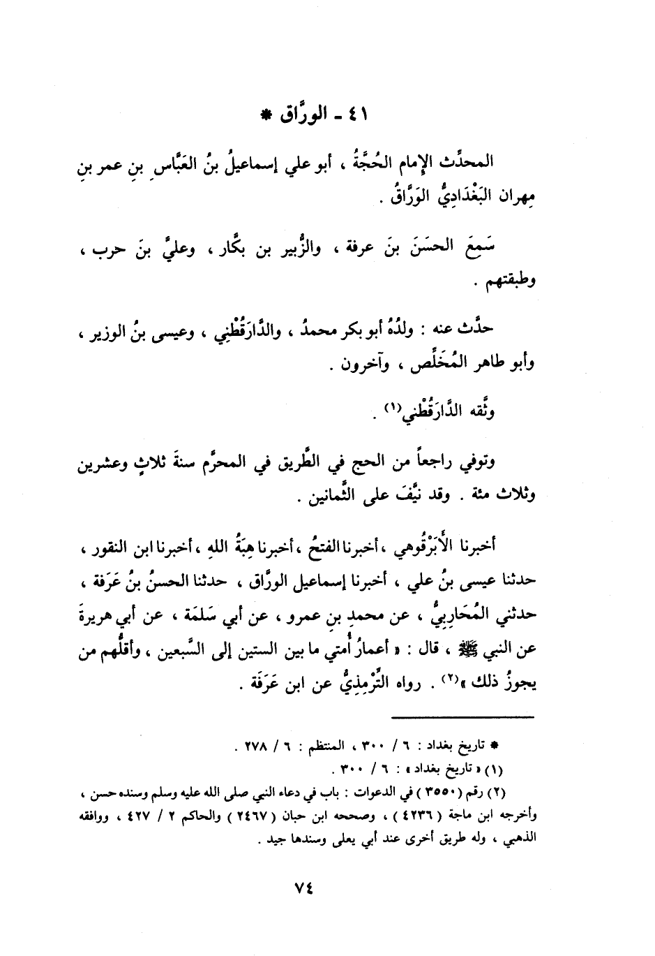 41 - الوَرَّاقُ أَبُو عَلِيٍّ إِسْمَاعِيْلُ بنُ العَبَّاسِ بنِ عُمَرَ *