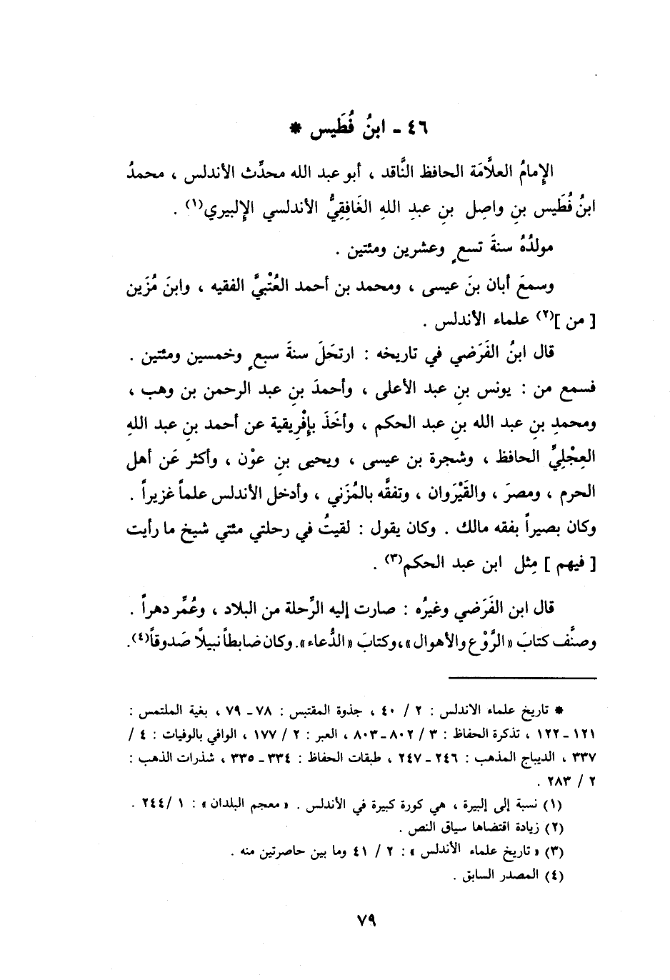 الإِمَامُ، العَلاَّمَةُ، الحَافِظُ، النَّاقِدُ، أَبُو عَبْدِ اللهِ، مُحَدِّثُ الأَنْدَلُسِ، مُحَمَّدُ بنُ فُطَيْسِ بنِ وَاصِل بنِ عَبْدِ اللهِ الغَافِقِيُّ، الأَنْدَلُسِيُّ، الإِلْبِيْرِيُّ (1) .