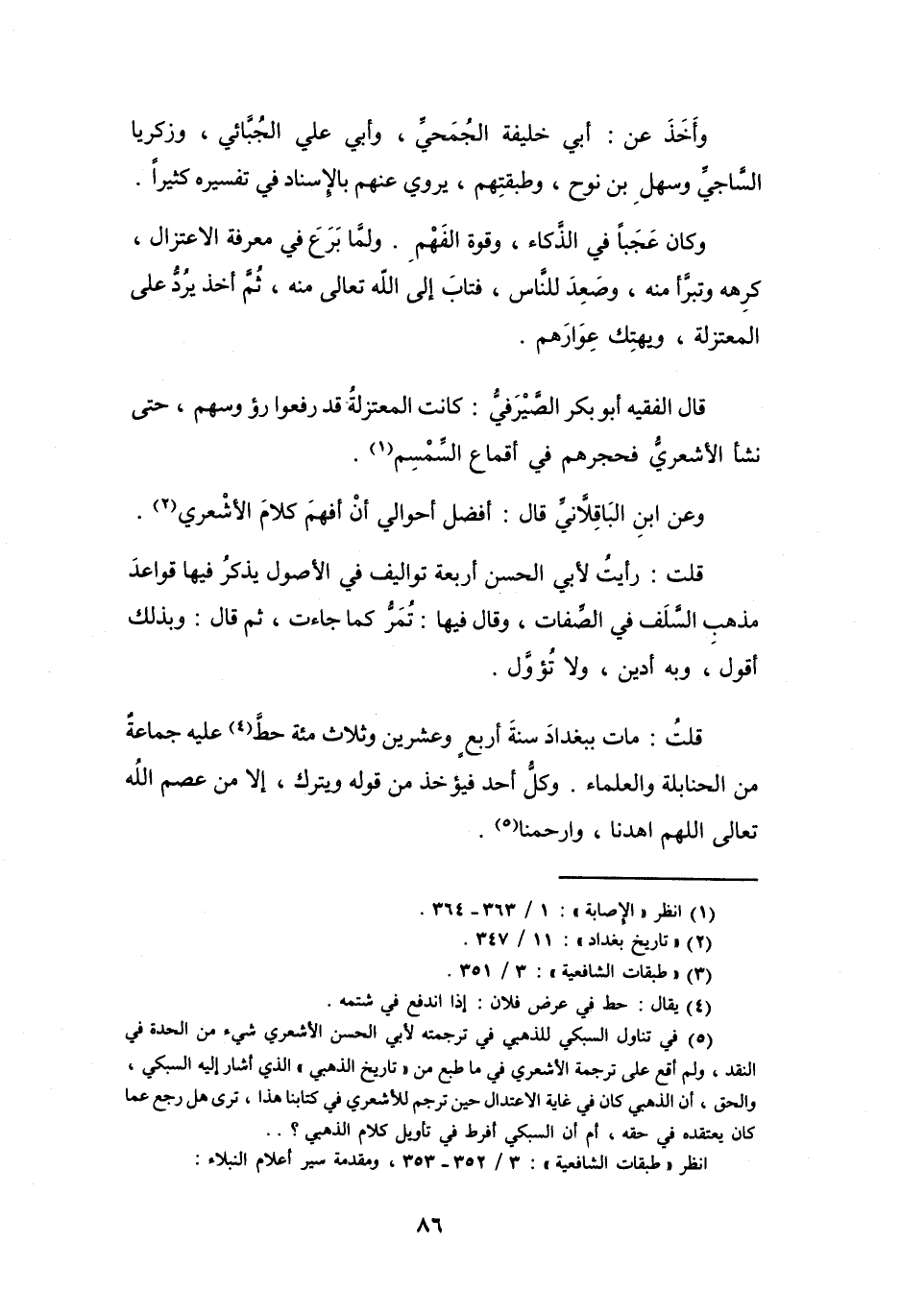 (5) في تناول السبكي للذهبي في ترجمته لأبي الحسن الأشعري شيء من الحدة في النقد، ولم أقع على ترجمة الأشعري في ما طبع من " تاريخ الذهبي " الذي أشار إليه السبكي، والحق، أن الذهبي كان في غاية الاعتدال حين ترجم للاشعري في كتابنا هذا، ترى هل رجع عما كان يعتقده في حقه، أم أن السبكي أفرط في تأويل كلام الذهبي؟.
