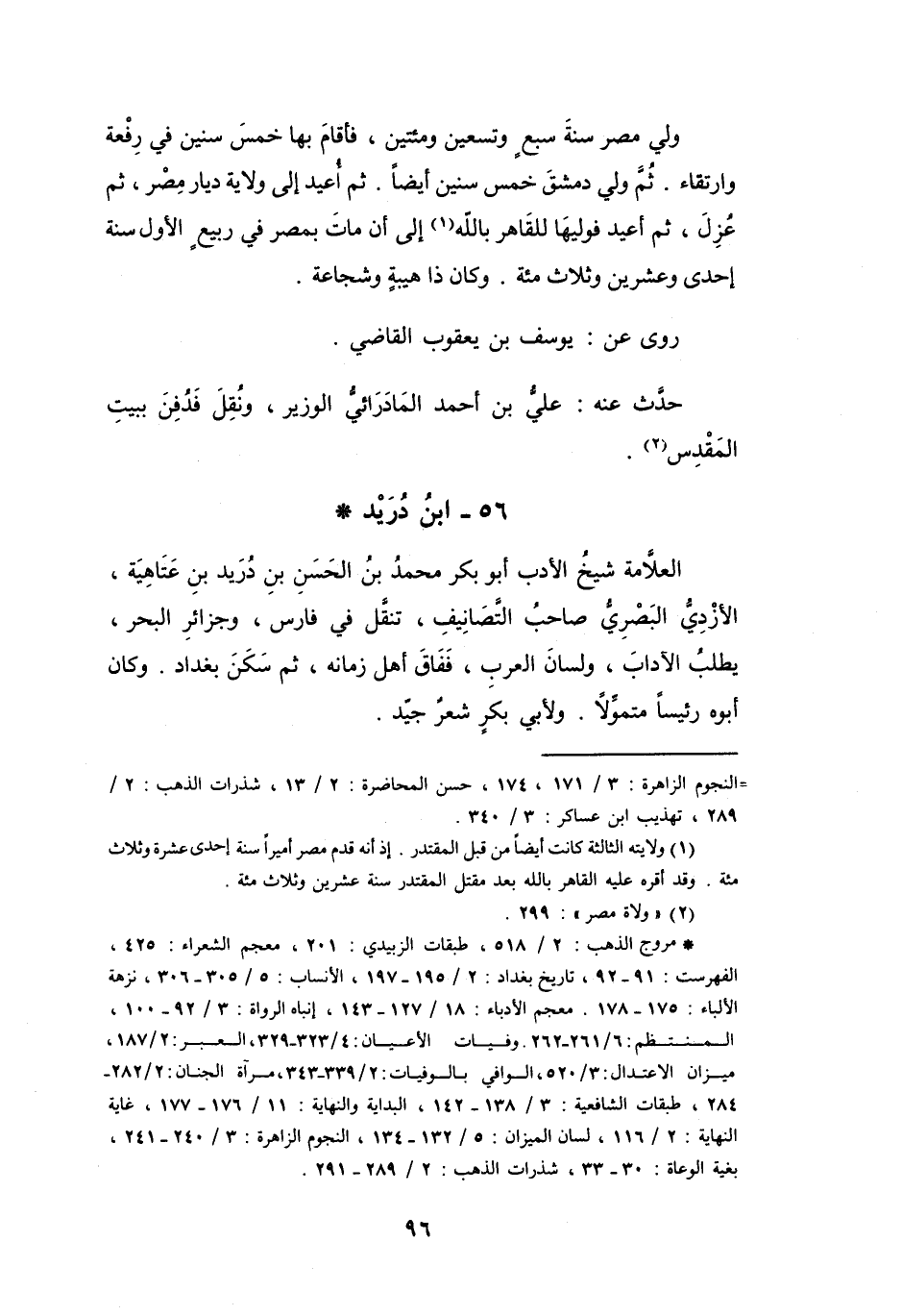 (*) مروج الذهب: 2 / 518، طبقات الزبيدي: 201، معجم الشعراء: 425، الفهرست: 91 - 92، تاريخ بغداد: 2 / 195 - 197، الأنساب: 5 / 305 - 306، نزهة الالباء: 175 - 178. معجم الأدباء: 18 / 127 - 143، إنباه الرواة: 3 / 92 - 100، المنتظم: 6 / 261 - 262. وفيات الأعيان: 4 / 323 - 329، العبر: 2 / 187، ميزان الاعتدال: 3 / 520، الوافي بالوفيات: 2 / 339 - 343، مرآة الجنان: 2 / 282 - 284، طبقات الشافعية: 3 / 138 - 142، البداية والنهاية: 11 / 176 - 177، غاية النهاية: 2 / 116، لسان الميزان: 5 / 132 - 134، النجوم الزاهرة: 3 / 240 - 241، بغية الوعاة: 30 - 33، شذرات الذهب: 2 / 289 - 291.