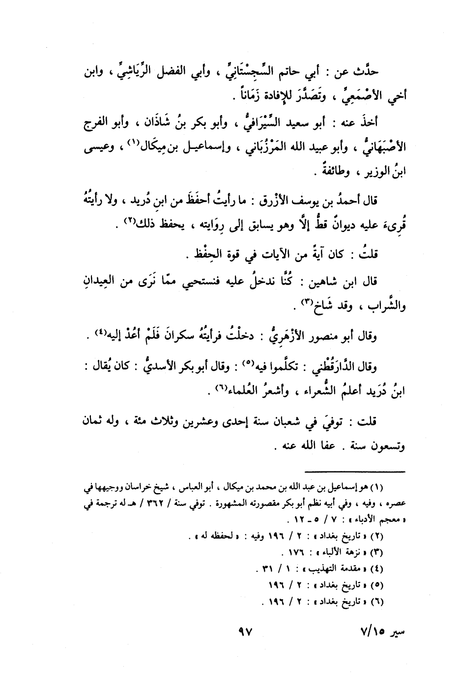 (1) هو إسماعيل بن عبد الله بن محمد بن ميكال، أبو العباس، شيخ خراسان ووجيهها في عصره، وفيه، وفي أبيه نظم أبو بكر مقصورته المشهورة.