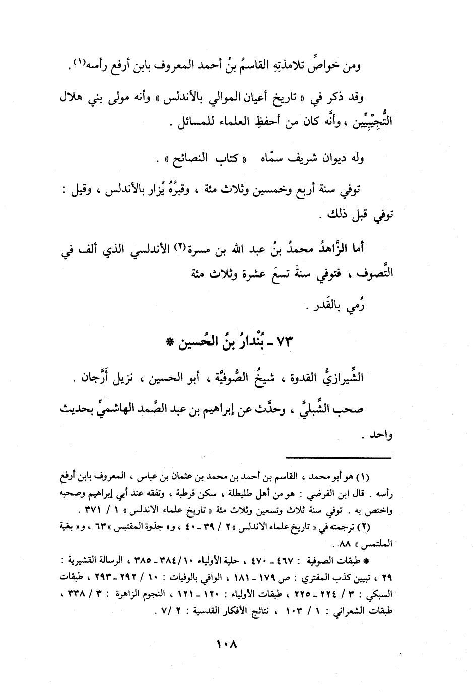 73 - بُنْدَارُ بنُ الحُسَيْنِ الشِّيْرَازِيُّ أَبُو الحُسَيْنِ *