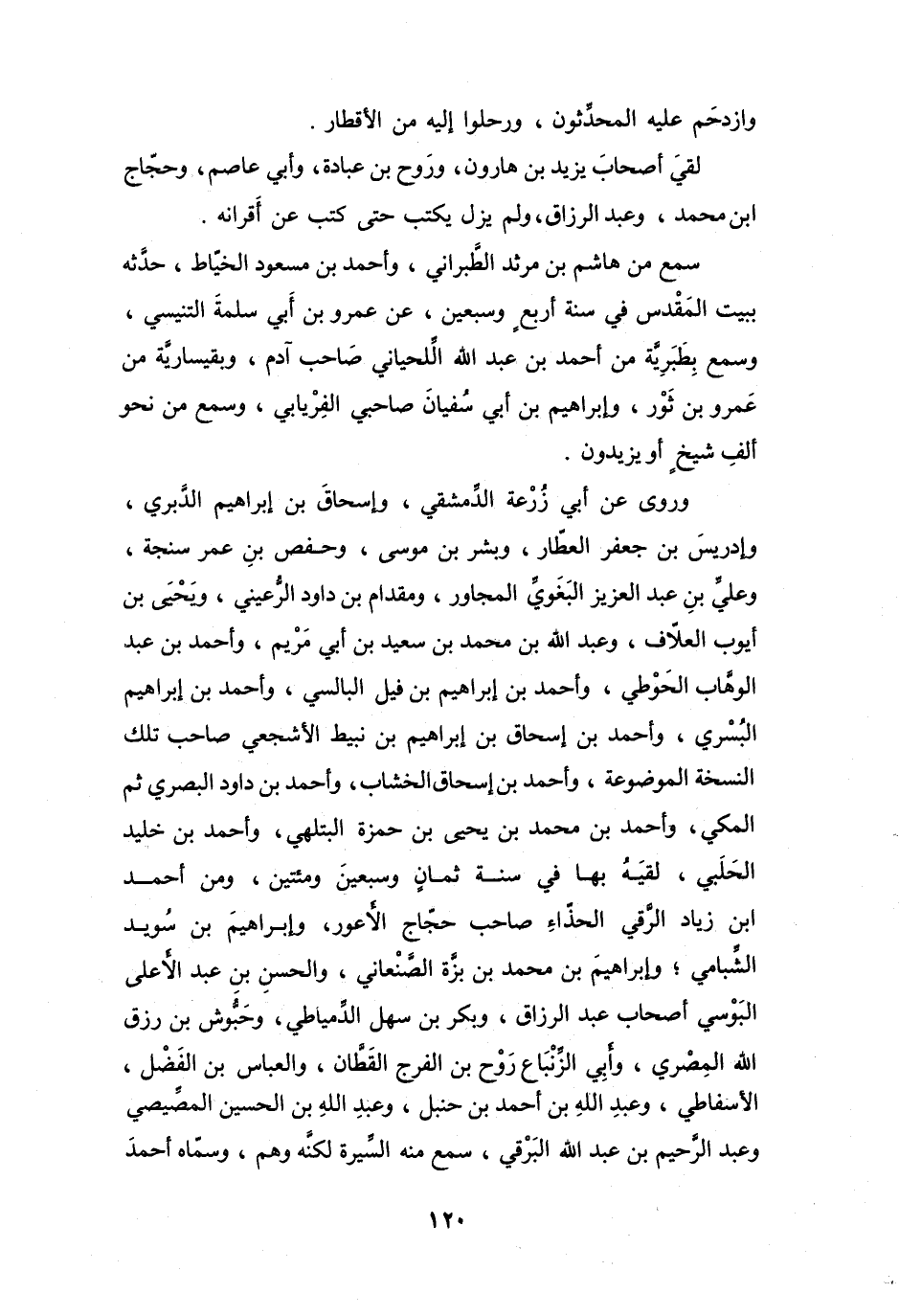 لقيَ: أَصْحَابَ يَزِيْدَ بنِ هَارُوْنَ، وَرَوحِ بنِ عُبَادَةَ، وَأَبِي عَاصِمٍ، وَحجَّاجِ بنِ مُحَمَّدٍ، وَعَبْدِ الرَّزَّاقِ، وَلَمْ يَزَلْ يكتبُ حَتَّى كتبَ عَنْ أَقرَانِهِ.