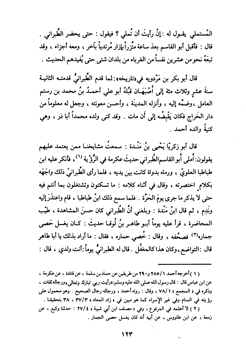 ثُمَّ قَالَ ابْنُ مَنْدَةَ: وَبلغنِي أَنَّ الطَّبَرَانِيَّ كَانَ حَسَنَ المشَاهدَةِ، طيِّبَ المُحَاضَرَةِ، قرأَ عَلَيْهِ يَوْماً أَبُو طَاهِرٍ بنُ لُوقَا حَدِيْثَ: كَانَ يغسلُ حَصَى جِمَارِهِ (2) فصحَّفَهُ، وَقَالَ: خُصِي حمَارِهِ، فَقَالَ: مَا أَرَادَ بِذَلِكَ يَا أَبا طَاهرٍ.