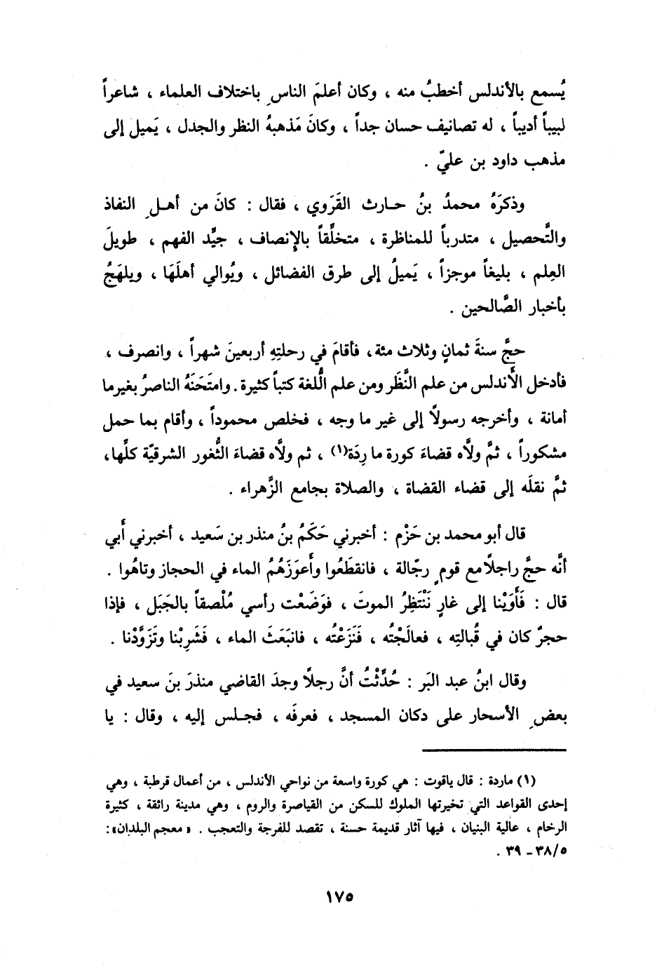 قَالَ أَبُو مُحَمَّدٍ بنُ حَزْمٍ: أَخْبَرَنِي حَكَمُ بنُ مُنذرِ بنِ سَعِيْدٍ، أَخْبَرَنِي أَبِي أَنَّهُ حَجَّ رَاجِلاً مَعَ قَوْمٍ رَجَّالَةٍ، فَانقَطَعُوا وَأَعوَزَهُمُ المَاءُ فِي الحِجَازِ وَتَاهُوا.