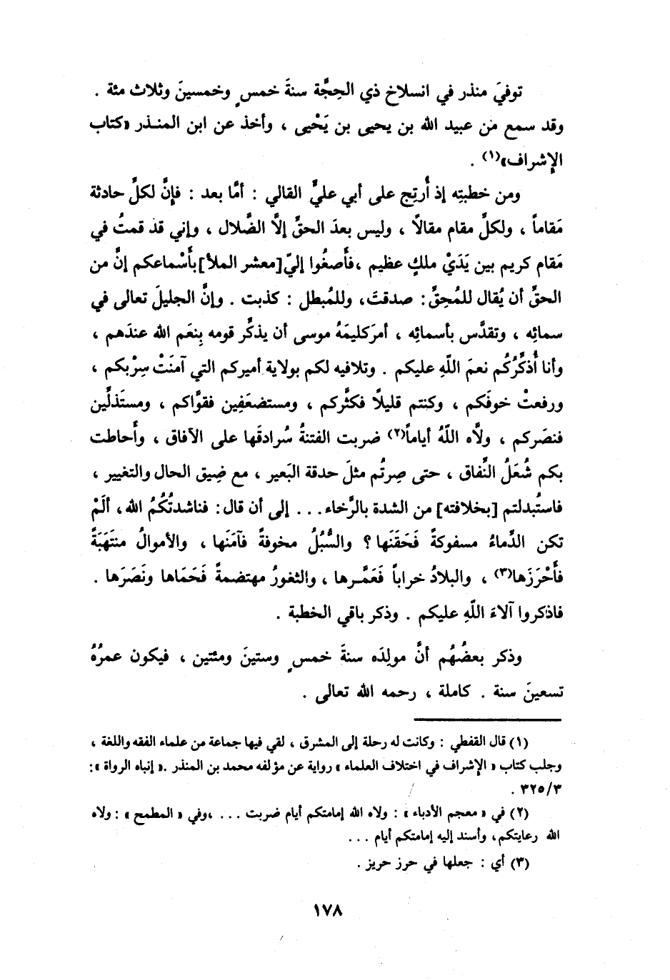 (1) قال القفطي: وكانت له رحلة إلى المشرق، لقي فيها جماعة من علماء الفقه واللغة، وجلب كتاب " الاشراف في اختلاف العلماء " رواية عن مؤلفه محمد بن المنذر " إنباه الرواة ": 3 / 325.