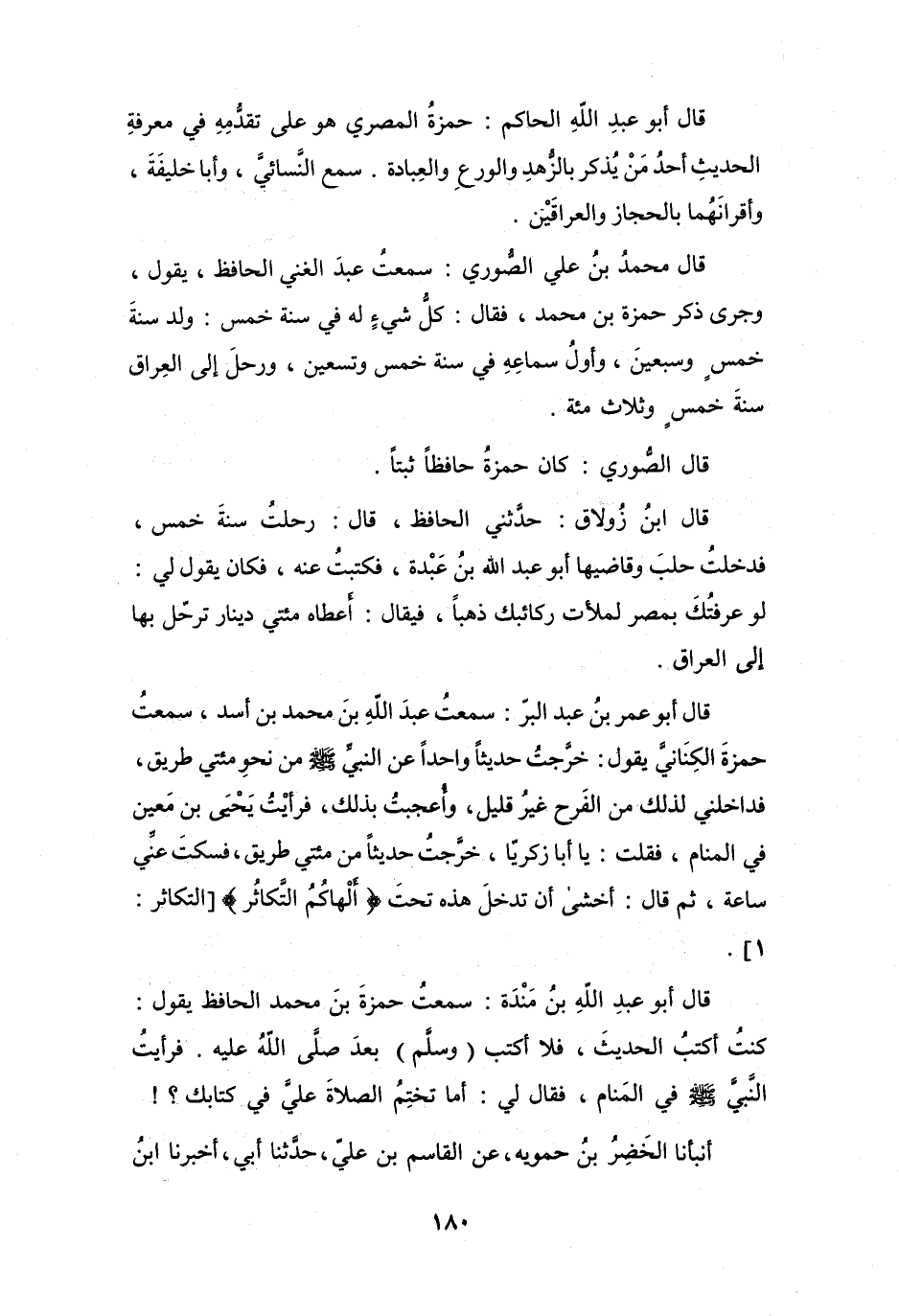 قَالَ أَبُو عَبْدِ اللهِ بنُ مَنْدَةَ: سَمِعْتُ حَمْزَةَ بنَ مُحَمَّدٍ الحَافِظَ يَقُوْلُ: كُنْتُ أَكتبُ الحَدِيْثَ، فَلاَ أَكتبُ وَ (سَلَّمَ) بَعْدَ صَلَّى اللهُ عَلَيْهِ.