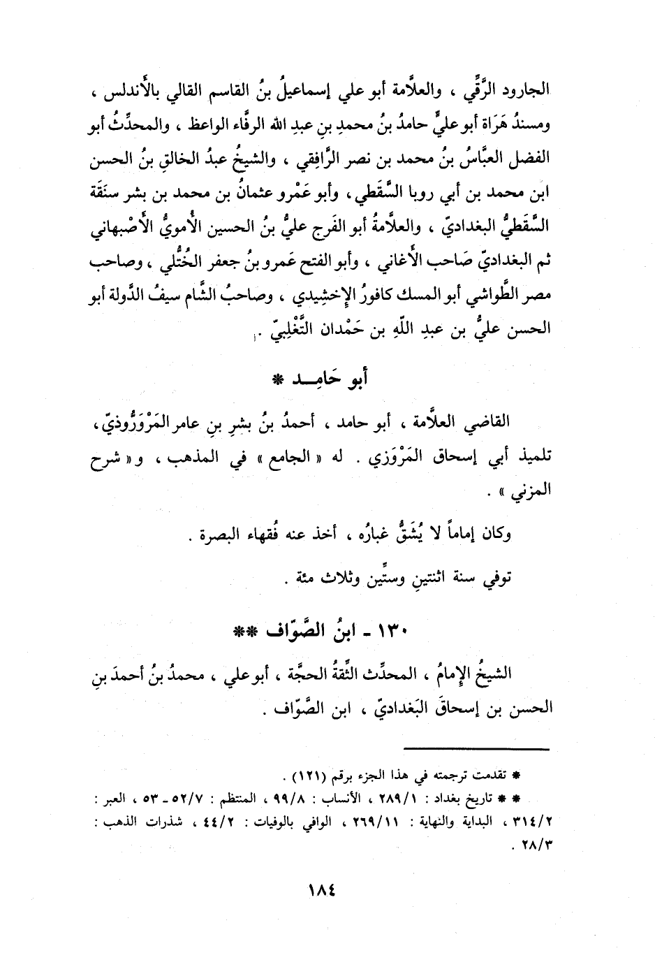 (* *) تاريخ بغداد: 1 / 289، الأنساب: 8 / 99، المنتظم: 7 / 52 - 53، العبر: 2 / 314، البداية والنهاية: 11 / 269، الوافي بالوفيات: 2 / 44، شذرات الذهب: 3 / 28.