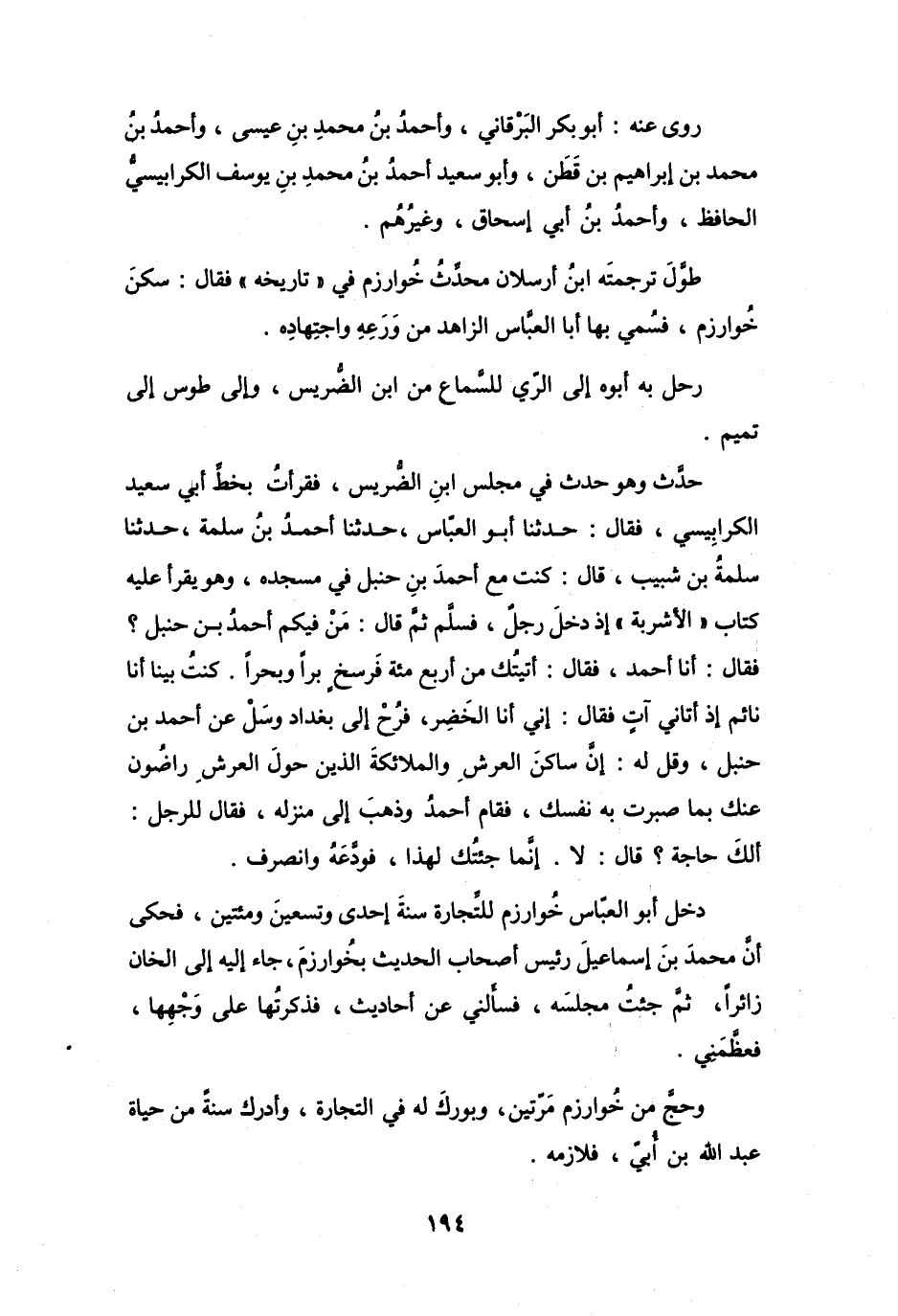 وَحَجَّ مِنْ خُوَارِزْمَ مَرَّتينِ، وَبُورِكَ لَهُ فِي التِّجَارَةِ، وَأَدْرَكَ سَنَةً مِنْ حَيَاةِ عَبْدِ اللهِ بنِ أُبَيٍّ فَلاَزَمَهُ.