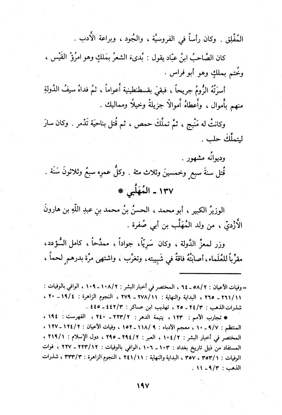 (*) تجارب الأمم: 123، يتيمة الدهر: 2 / 223 - 240، الفهرست: 194، المنتظم: 7 / 9 - 10، معجم الأدباء: 9 / 118 - 152، وفيات الأعيان: 2 / 124 - 127، المختصر في أخبار البشر: 2 / 104، العبر: 2 / 294 - 295، دول الإسلام: 1 / 219،