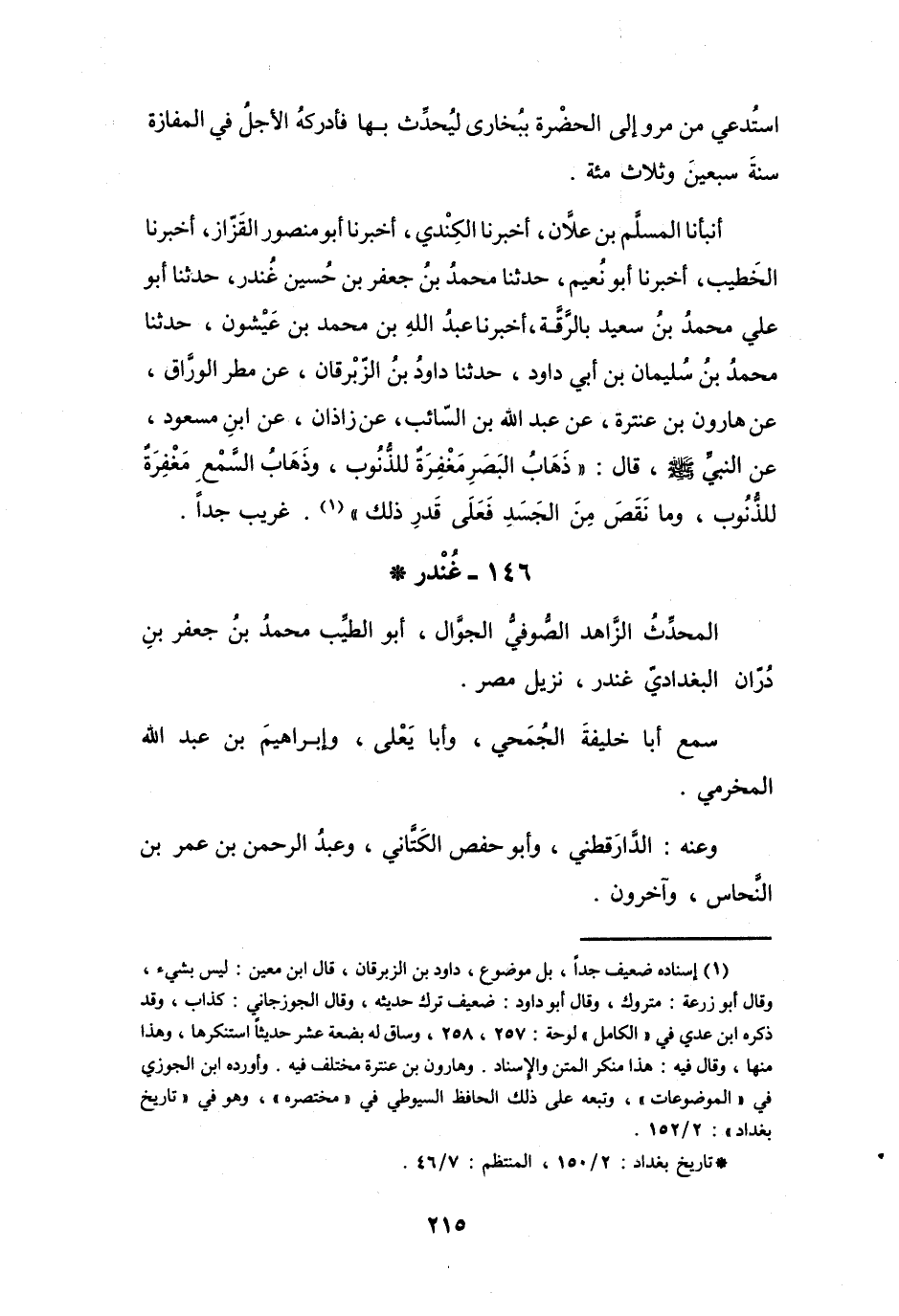 146 - غُنْدَرٌ أَبُو الطَّيِّبِ مُحَمَّدُ بنُ جَعْفَرِ بنِ دُرَّانَ البَغْدَادِيُّ *