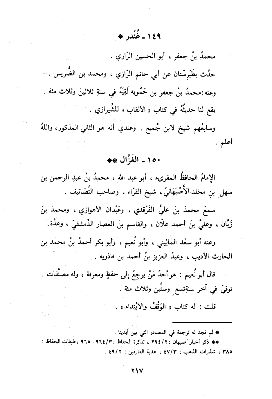 149 - غُنْدَرٌ مُحَمَّدُ بنُ جَعْفَرٍ أَبُو الحُسَيْنِ الرَّازِيُّ *