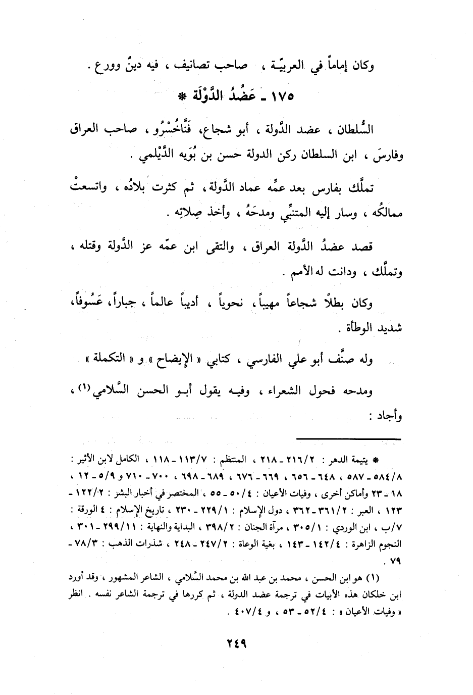 175 - عَضُدُ الدَّوْلَةِ فَنَّاخُسْرُو بنُ حَسَنِ بنِ بُوَيْه الدَّيْلَمِيُّ *