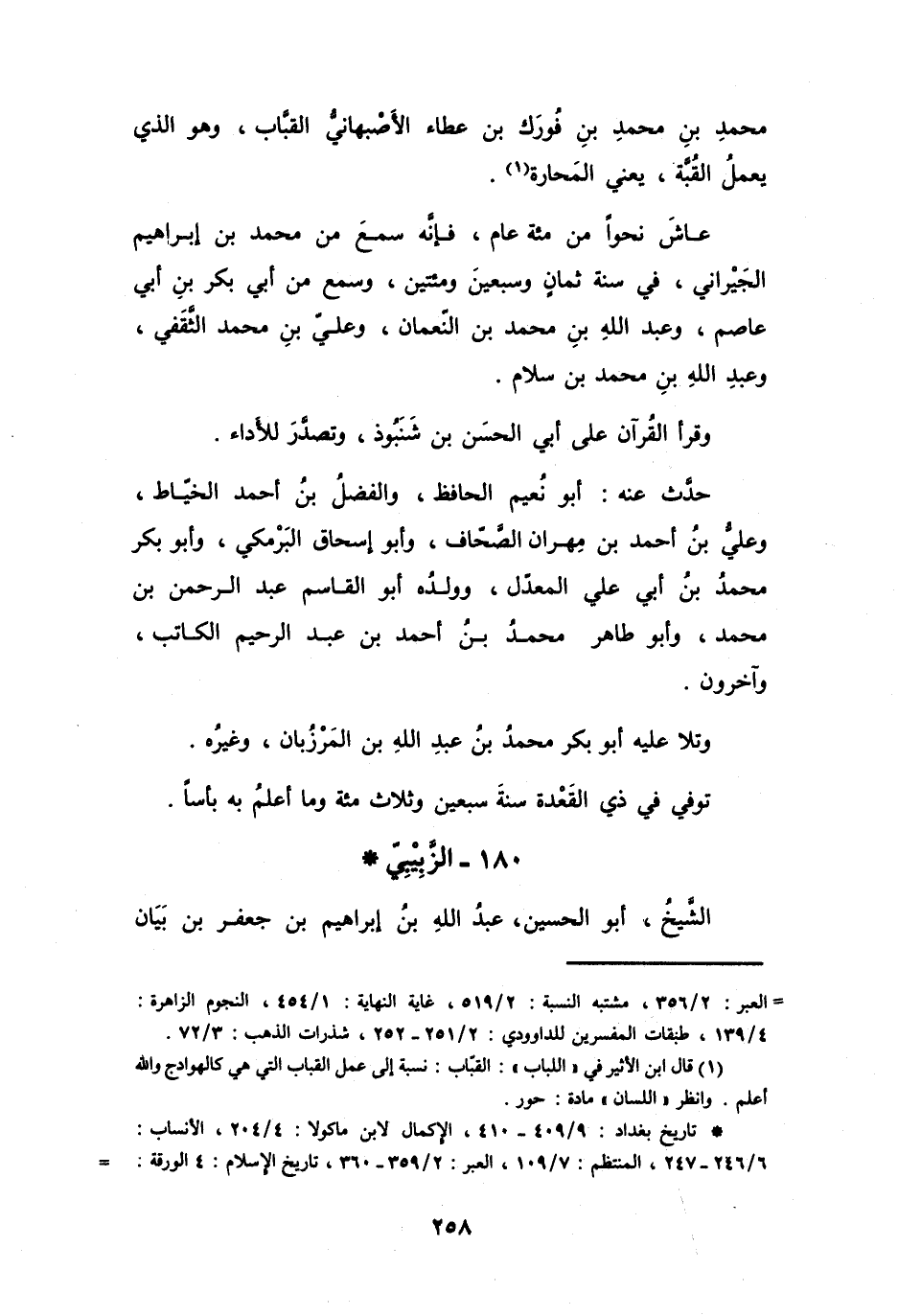 180 - الزَّبِيْبِيُّ أَبُو الحُسَيْنِ عَبْدُ اللهِ بنُ إِبْرَاهِيْمَ بنِ جَعْفَرٍ *