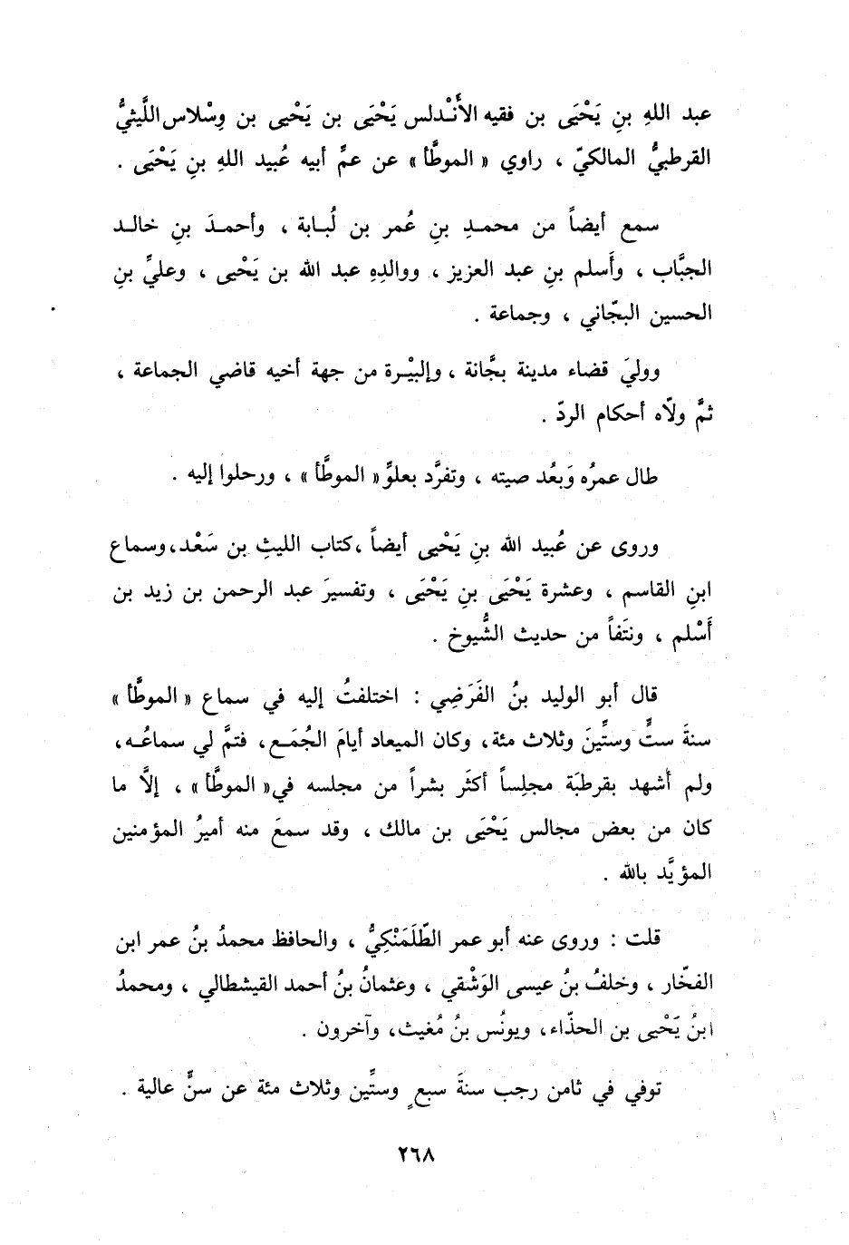 عَبْدِ اللهِ بنِ يَحْيَى ابْنِ فَقِيْهِ الأَنْدَلُسِ يَحْيَى بنِ يَحْيَى بنِ وِسْلاسَ اللَّيْثِيُّ القُرْطُبِيُّ المَالِكِيُّ، رَاوِي (المُوَطَّأ) عَنْ عمِّ أَبيهِ عُبيدِ اللهِ بنِ يَحْيَى.
