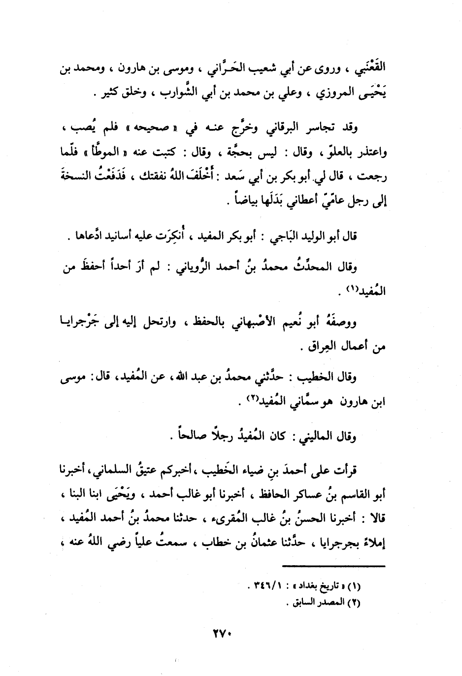 وَقَالَ الخَطِيْبُ: حَدَّثَنِي مُحَمَّدُ بنُ عَبْدِ اللهِ، عَنِ المُفِيْدِ، قَالَ: مُوْسَى بنُ هَارُوْنَ هُوَ سمَّانِي المُفِيْدَ (2) .