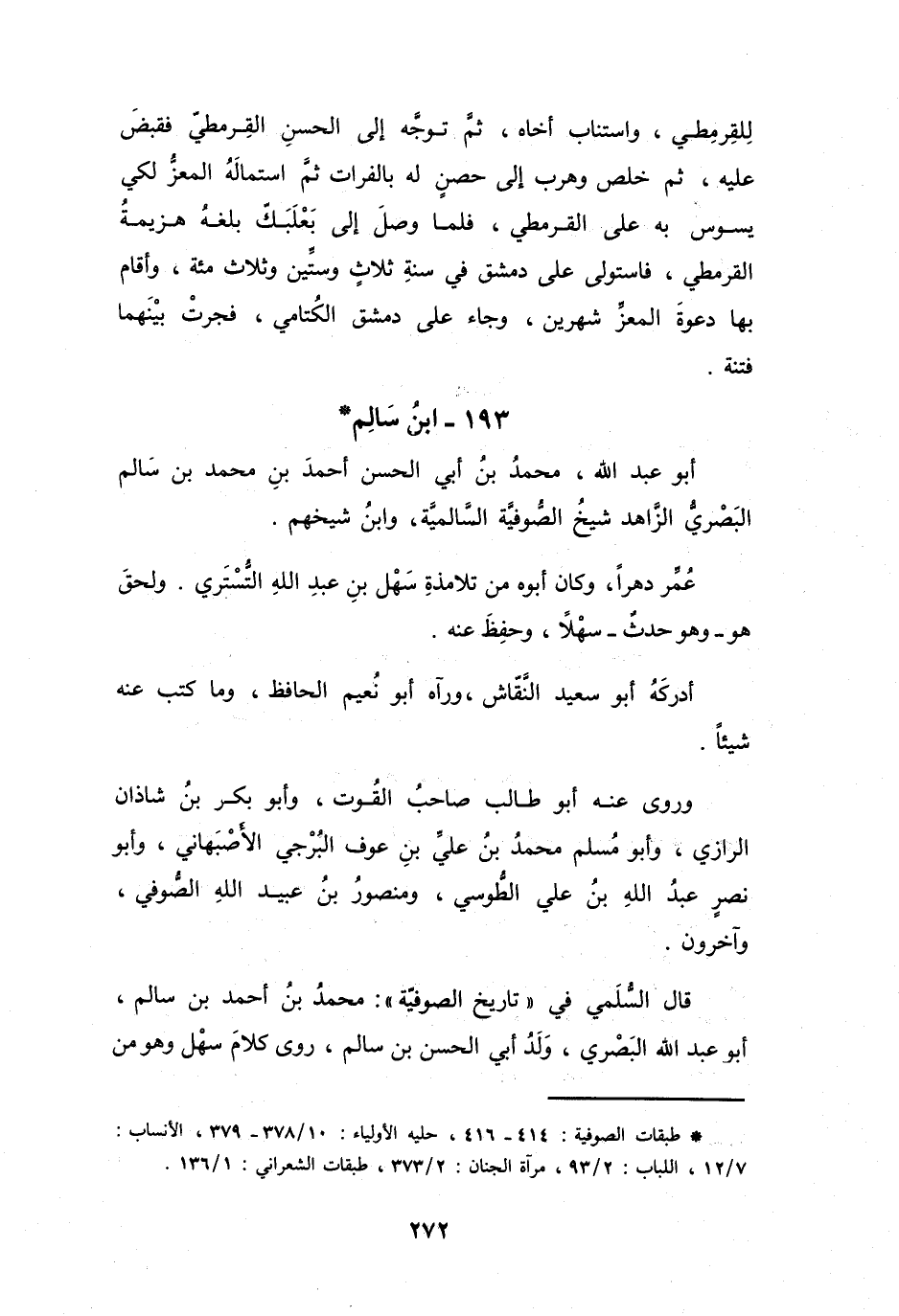 (*) طبقات الصوفية: 414 - 416، حلية الأولياء: 10 / 378 - 379، الأنساب: 7 / 12، اللباب: 2 / 93، مرآة الجنان: 2 / 373، طبقات الشعراني: 1 / 136.