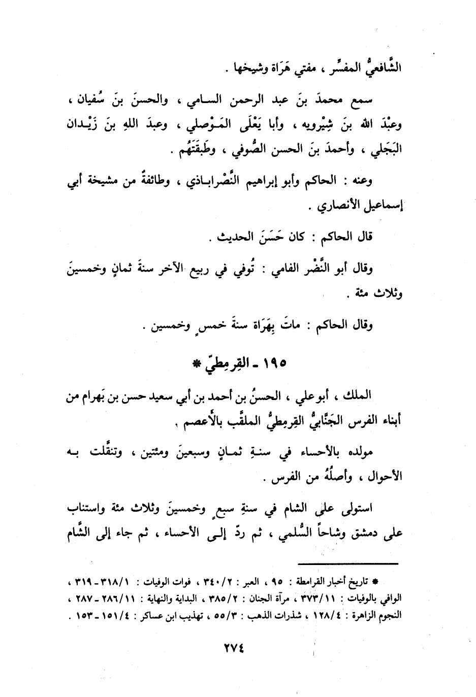 (*) تاريخ أخبار القرامطة: 95، العبر: 2 / 340، فوات الوفيات: 1 / 318 - 319، الوافي بالوفيات: 11 / 373، مرآة الجنان: 2 / 385، البداية والنهاية: 11 / 286 - 287، النجوم الزاهرة: 4 / 128، شذارت الذهب: 3 / 55، تهذيب ابن عساكر: 4 / 151 - 153.