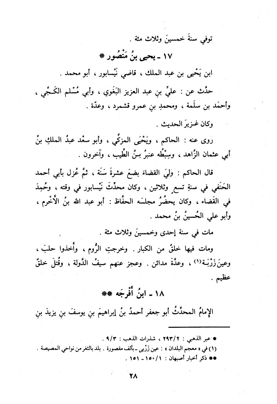 17 - يَحْيَى بنُ مَنْصُوْرِ بنِ يَحْيَى بنِ عَبْدِ المَلِكِ *