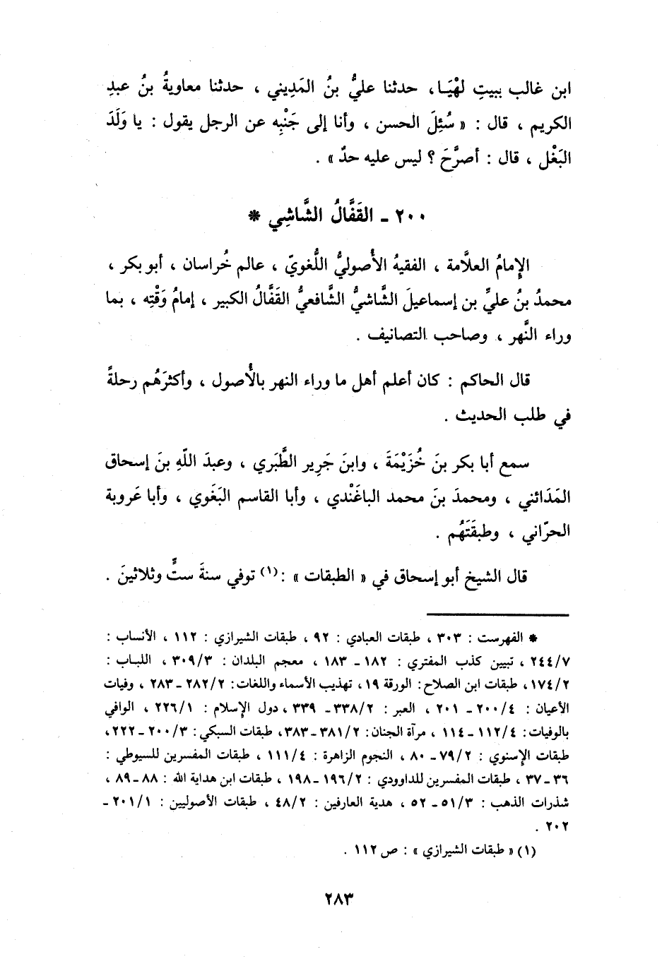 200 - القَفَّالُ الشَّاشِيُّ مُحَمَّدُ بنُ عَلِيِّ بنِ إِسْمَاعِيْلَ *