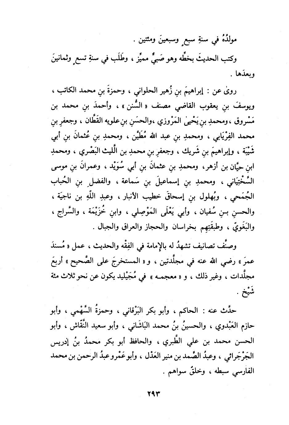 مَوْلِدُهُ فِي سَنَةِ سَبْعٍ وَسَبْعِيْنَ وَمائَتَيْنِ.