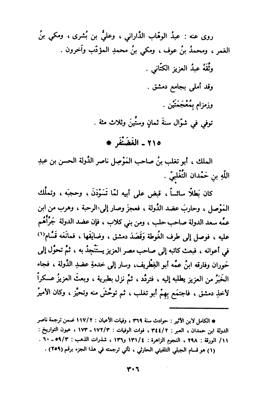 215 - الغَضَنْفَرُ أَبُو تَغْلِب بنُ الحَسَنِ بنِ عَبْدِ اللهِ التَّغْلِبِيُّ *