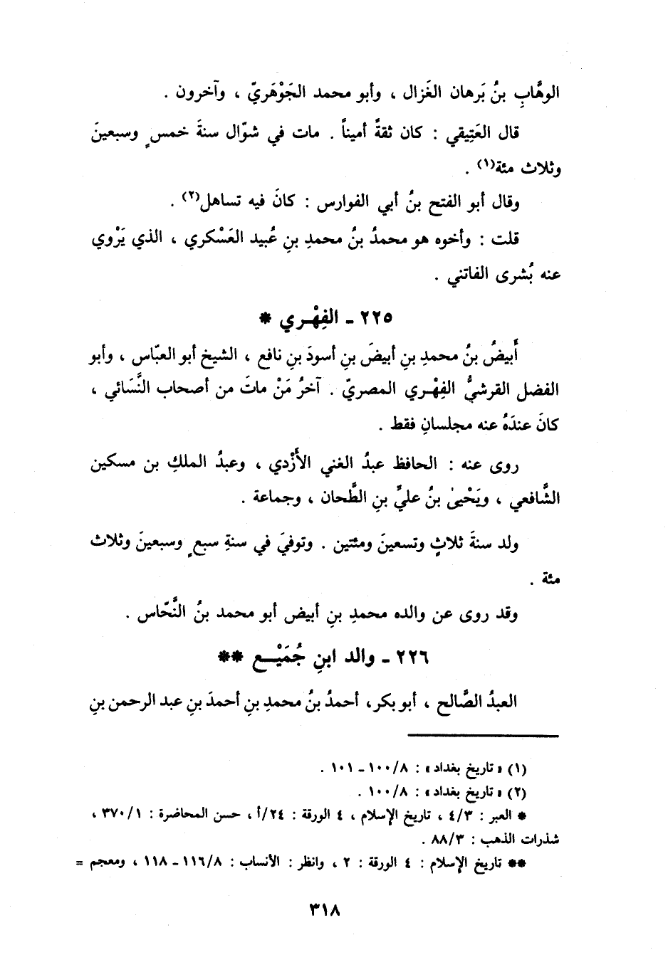 (2) " تاريخ بغداد ": 8 / 100.