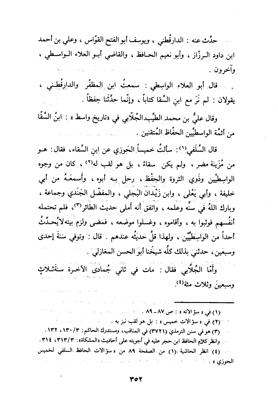 (4) انظر الحاشية (1) من الصفحة 89 من " سؤالات الحافظ السلفي لخميس الحوزي ".