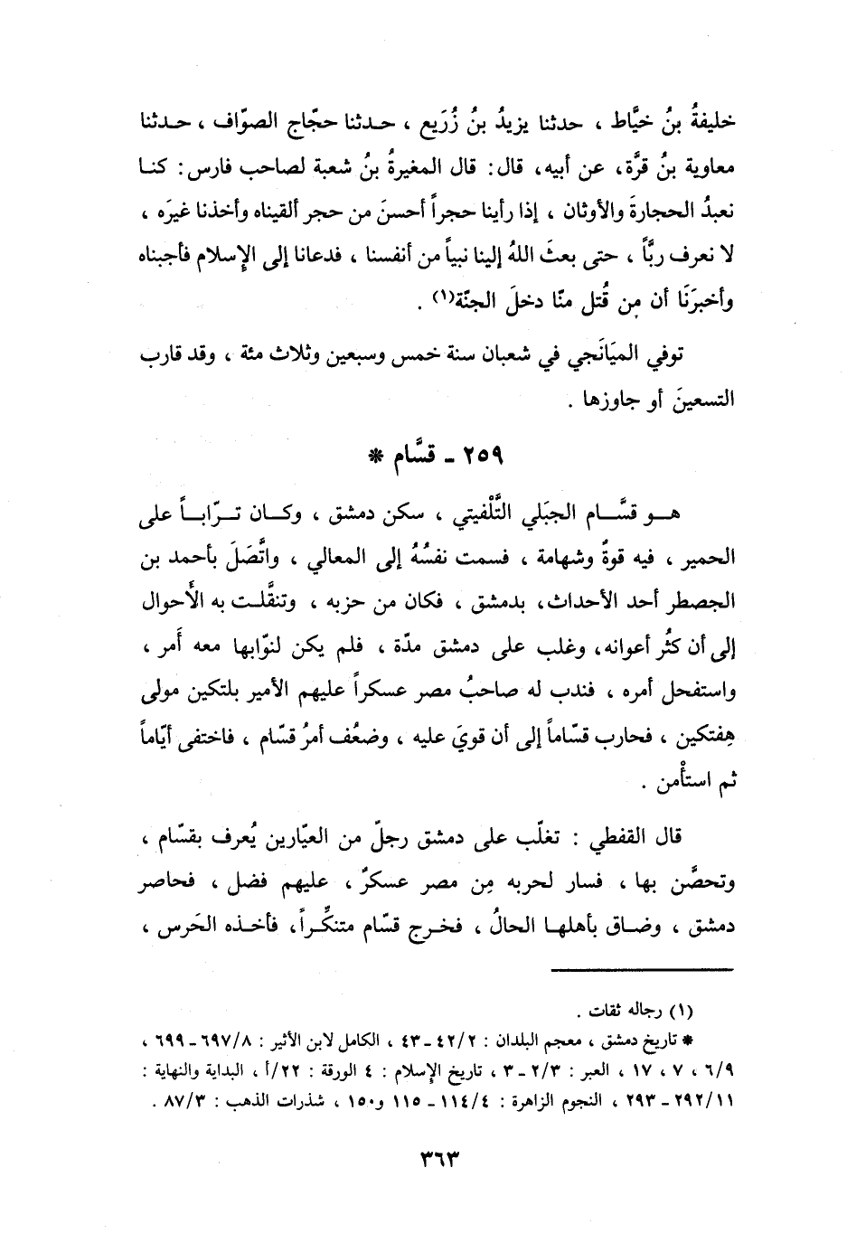 (*) تاريخ دمشق، معجم البلدان: 2 / 42 - 43، الكامل لابن الأثير: 8 / 697 - 699، 9 / 6، 7، 17، العبر: 3 / 2 - 3، تاريخ الإسلام: 4 الورقة: 22 / أ، البداية والنهاية: 11 / 292 - 293، النجوم الزاهرة: 4 / 114 - 115، و150، شذرات الذهب: 3 / 87.