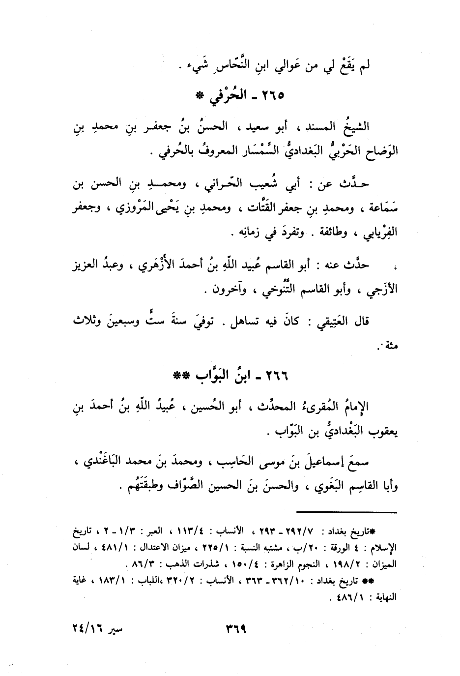 265 - الحُرْفِيُّ أَبُو سَعِيْدٍ الحَسَنُ بنُ جَعْفَرِ بنِ مُحَمَّدٍ *