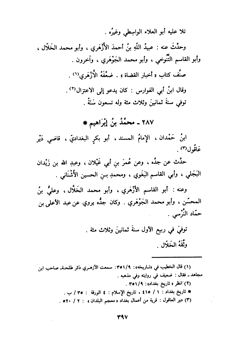 (2) انظر " تاريخ بغداد ": 9 / 351.