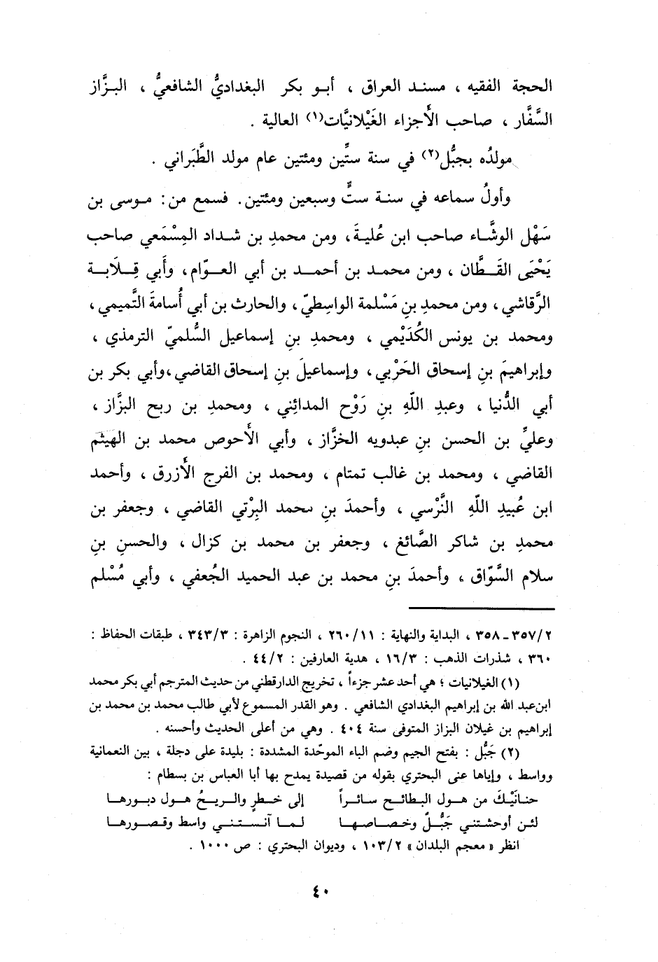 الحُجَّةُ، الفَقِيْهُ، مُسْنِدُ العِرَاقِ، أَبُو بَكْرٍ البَغْدَادِيُّ، الشَّافِعِيُّ، البَزَّازُ، السَّفَّارُ، صَاحِبُ الأَجزَاءِ (الغَيْلاَنِيَّاتِ (1)) العَالِيَةِ.