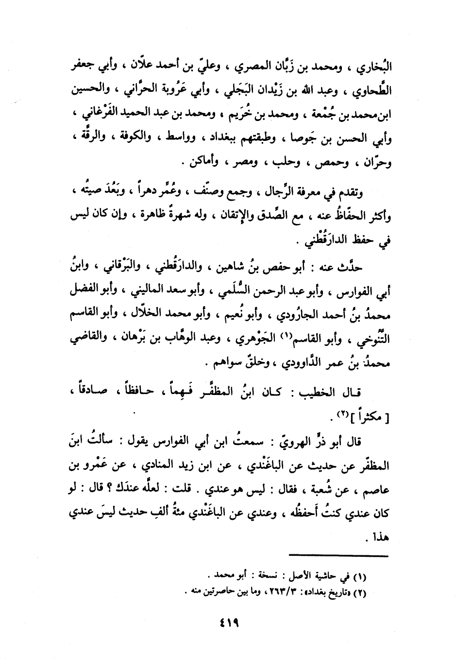 (2) " تاريخ بغداد ": 3 / 263، وما بين حاصرتين منه.