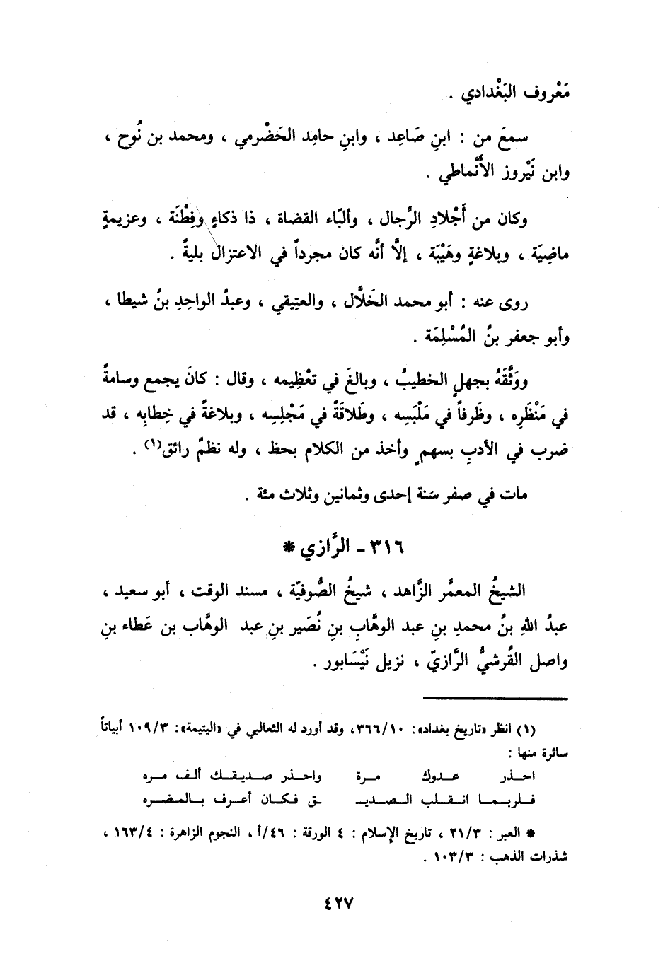 316 - الرَّازِيُّ عَبْدُ اللهِ بنُ مُحَمَّدِ بنِ عَبْدِ الوَهَّابِ *