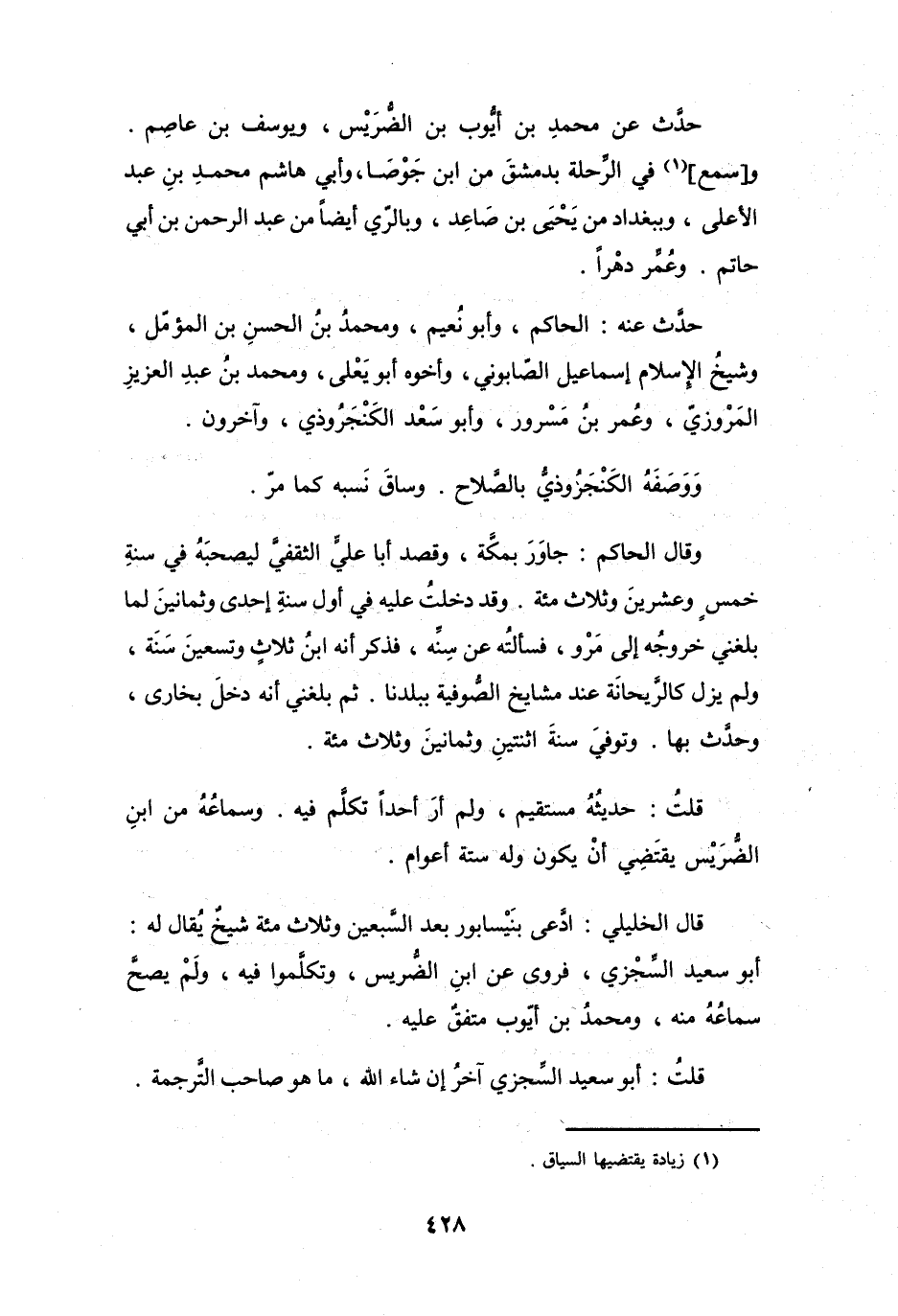 قُلْتُ: أَبُو سَعِيْدٍ السِّجْزِيُّ آخَرُ - إِنْ شَاءَ اللهُ -، مَا هُوَ صَاحِبُ التَّرْجَمَةِ.