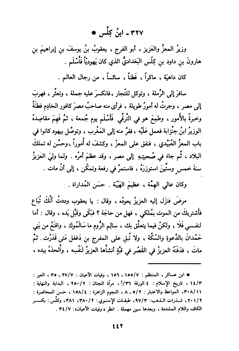 327 - ابْنُ كِلِّسَ أَبُو الفَرَجِ يَعْقُوْبُ بنُ يُوْسُفَ البَغْدَادِيُّ *