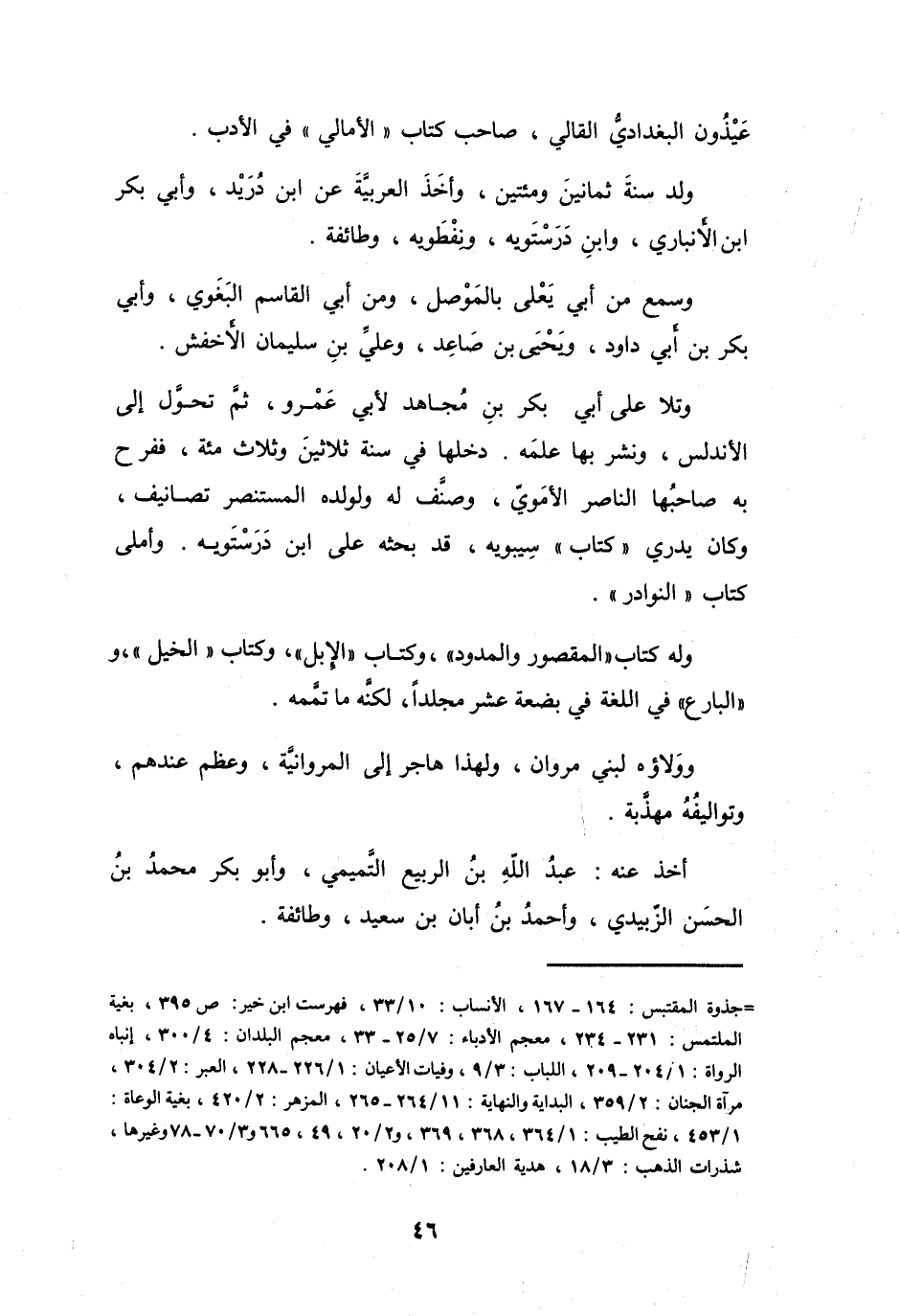 = جذوة المقتبس: 164 - 167، الأنساب: 10 / 33، فهرست ابن خير: ص 395، بغية الملتمس: 231 - 234، معجم الأدباء: 7 / 25 - 33، معجم البلدان: 4 / 300، إنباه الرواة: 1 / 204 - 209، اللباب: 3 / 9، وفيات الأعيان: 1 / 226 - 228، العبر: 2 / 304، مرآة الجنان: 2 / 359، البداية والنهاية: 11 / 264 - 265، المزهر: 2 / 420، بغية الوعاة: 1 / 453، نفح الطيب: 1 / 364، 368، 369، و2 / 20، 49، 665 و3 / 70 - 78 وغيرها، شذرات الذهب: 3 / 18، هدية العارفين: 1 / 208.