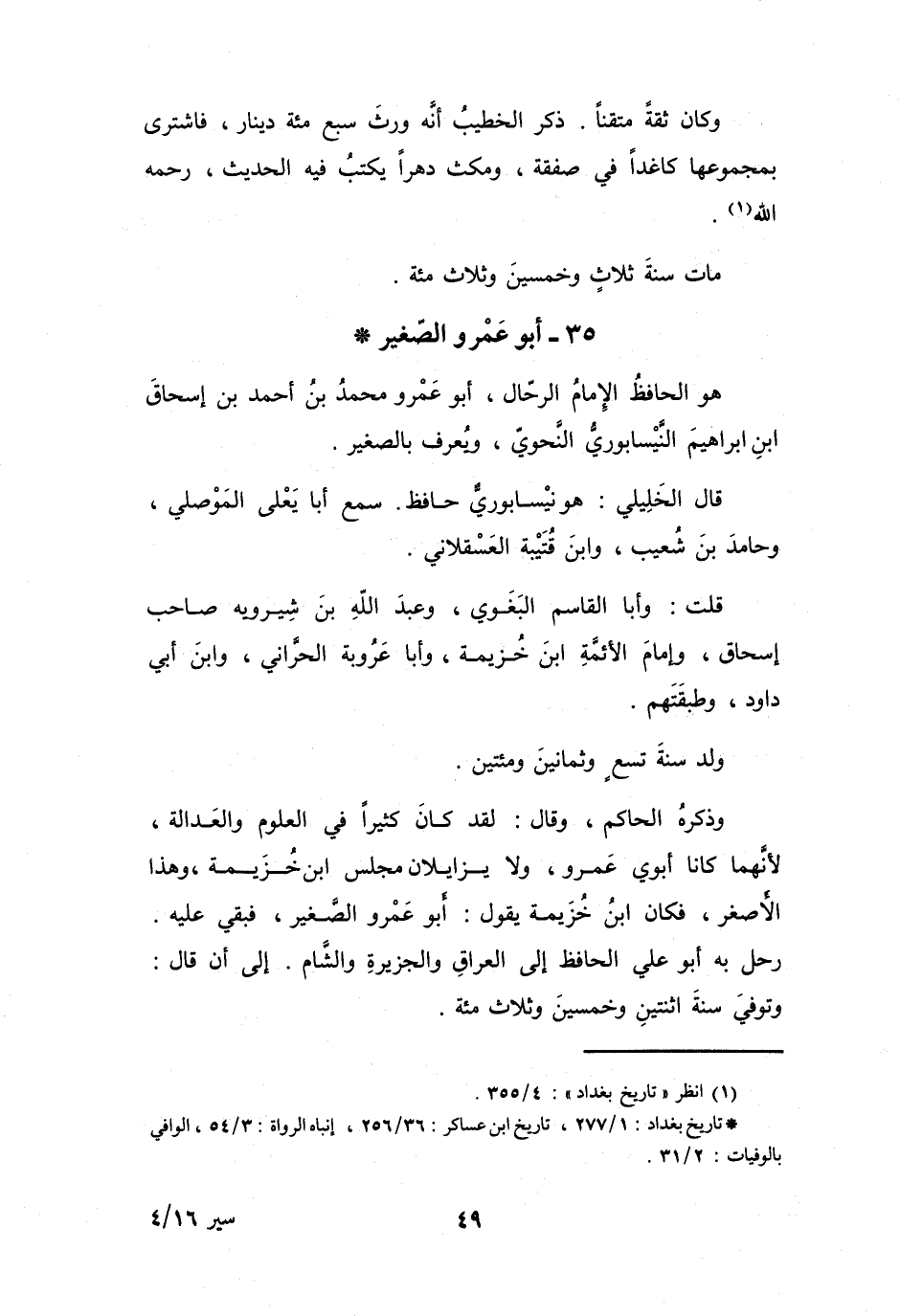 35 - أَبُو عَمْرٍو الصَّغِيْرُ مُحَمَّدُ بنُ أَحْمَدَ النَّيْسَابُوْرِيُّ *