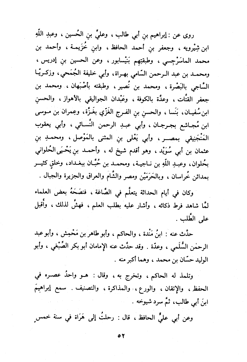 وَعَنْ أَبِي عليٍّ الحَافِظِ، قَالَ: رحلتُ إِلَى هَرَاةَ فِي سَنَةِ خَمْسٍ