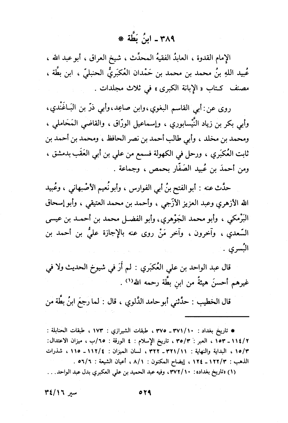 الإِمَامُ، القُدْوَةُ، العَابِدُ، الفَقِيْهُ، المُحَدِّثُ، شَيْخُ العِرَاقِ، أَبُو عَبْدِ اللهِ عُبَيْدُ اللهِ بنُ مُحَمَّدِ بنِ مُحَمَّدِ بنِ حَمْدَانَ العُكْبَرِيُّ الحَنْبَلِيُّ، ابْنُ بَطَّةَ، مُصَنِّفُ كِتَابِ (الإِبَانةِ الكُبْرَى) فِي ثَلاَثِ مُجَلَّدَاتٍ.