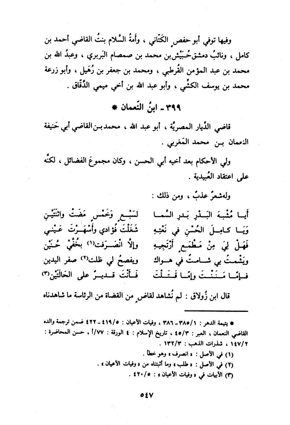 (3) الابيات في " وفيات الأعيان ": 5 / 420.
