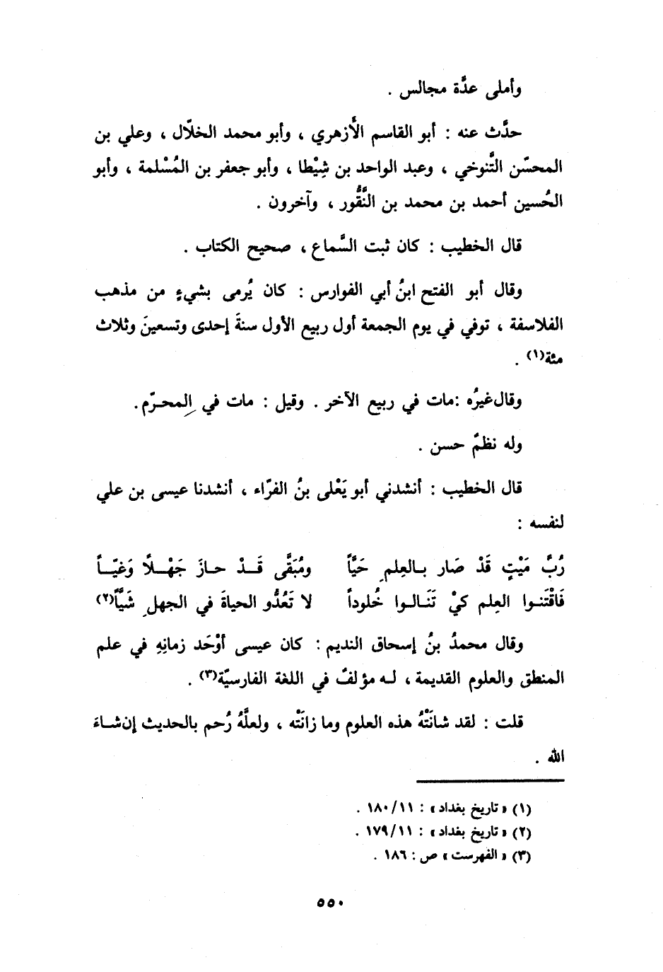 (2) " تاريخ بغداد ": 11 / 179.