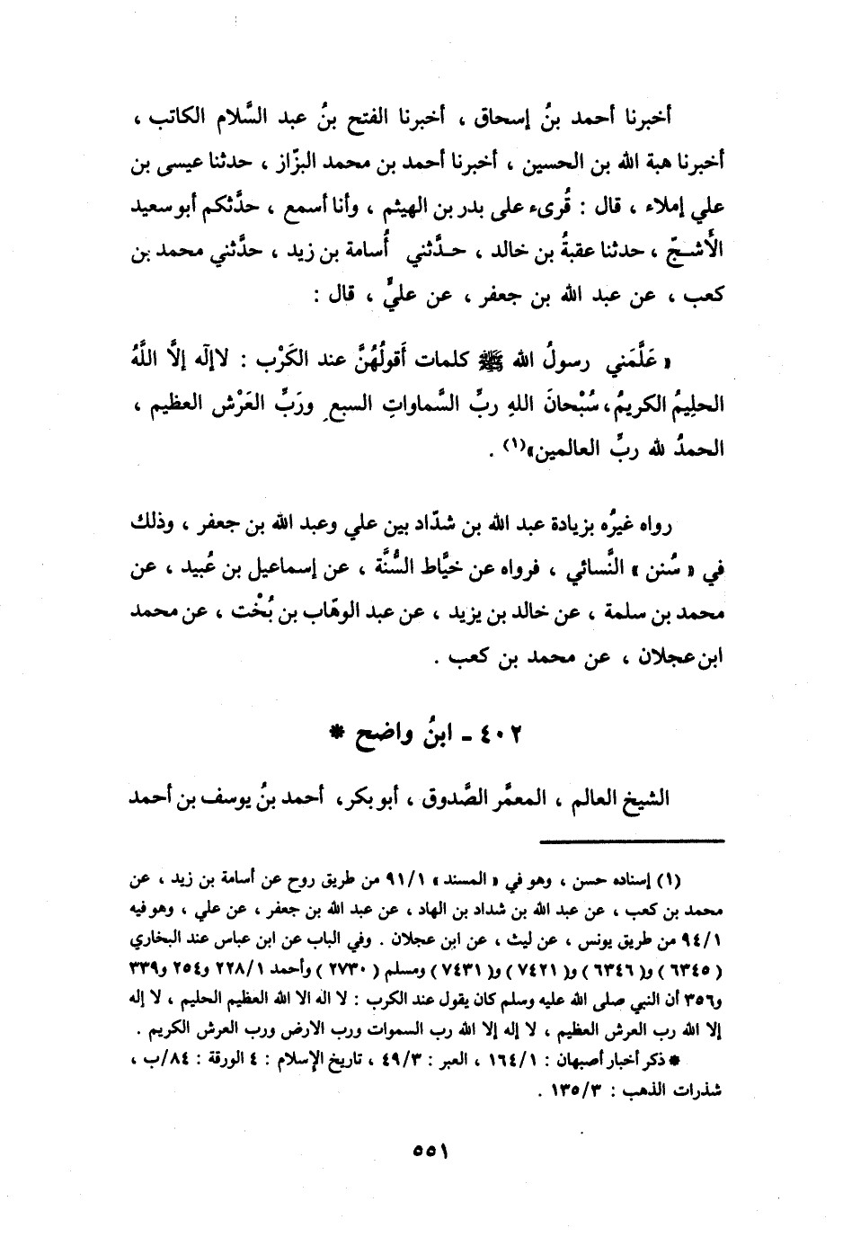 (1) إسناده حسن، وهو في " المسند " 1 / 91 من طريق روح عن أسامة بن زيد، عن محمد بن كعب، عن عبد الله بن شداد بن الهاد، عن عبد الله بن جعفر، عن علي، وهو فيه 1 / 94 من طريق يونس، عن ليث، عن ابن عجلان.