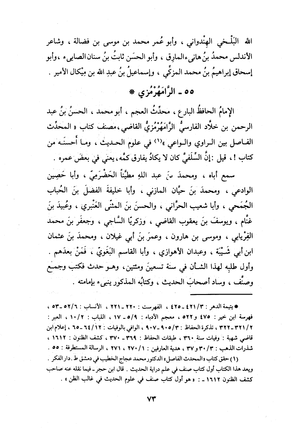 55 - الرَّامَهُرْمُزِيُّ الحَسَنُ بنُ عَبْدِ الرَّحْمَنِ بنِ خَلاَّدٍ *