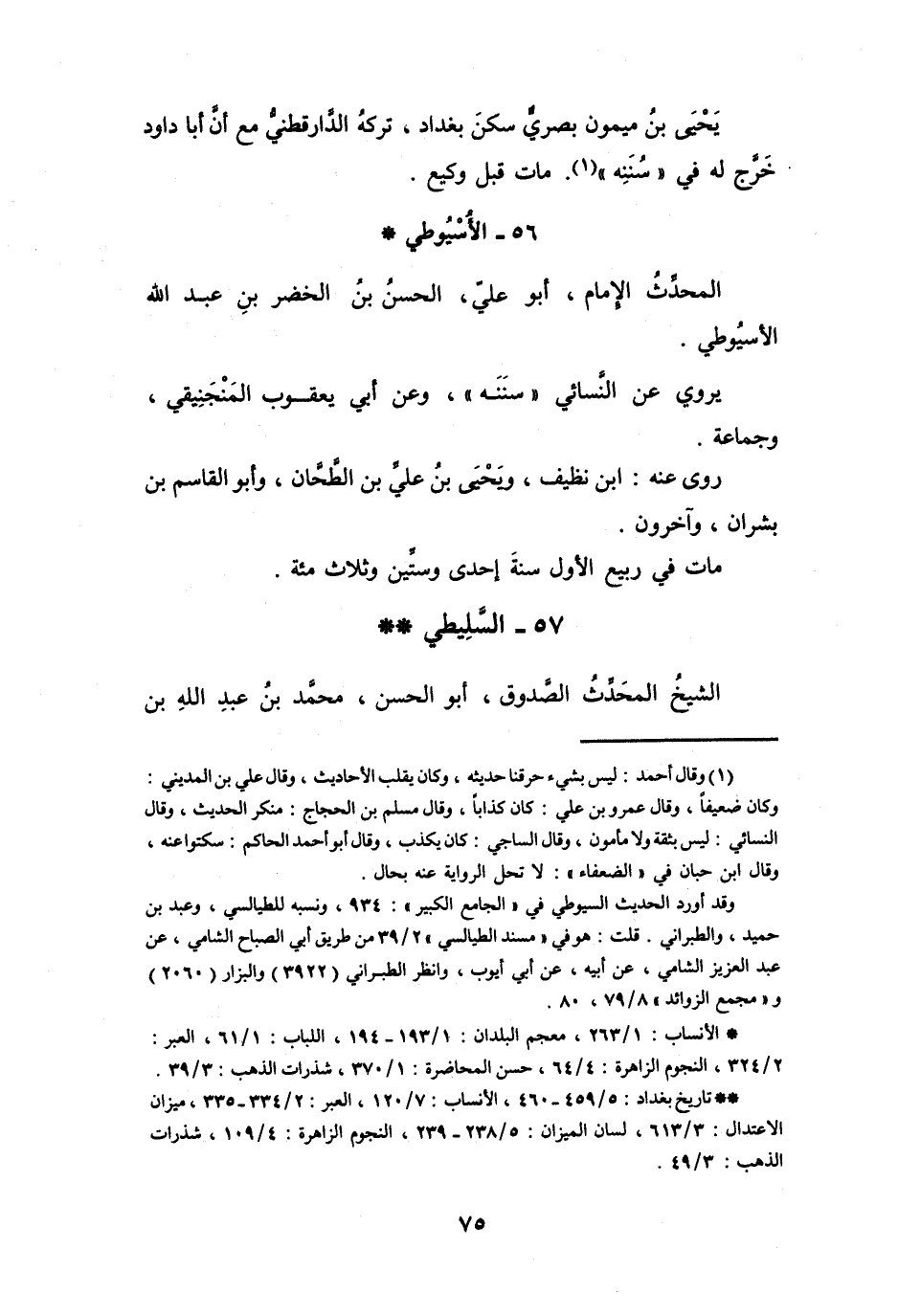 (* *) تاريخ بغداد: 5 / 459 - 460، الأنساب: 7 / 120، العبر: 2 / 334 - 335، ميزان الاعتدال: 3 / 613، لسان الميزان: 5 / 238 - 239، النجوم الزاهرة: 4 / 109، شذرات الذهب: 3 / 49،
