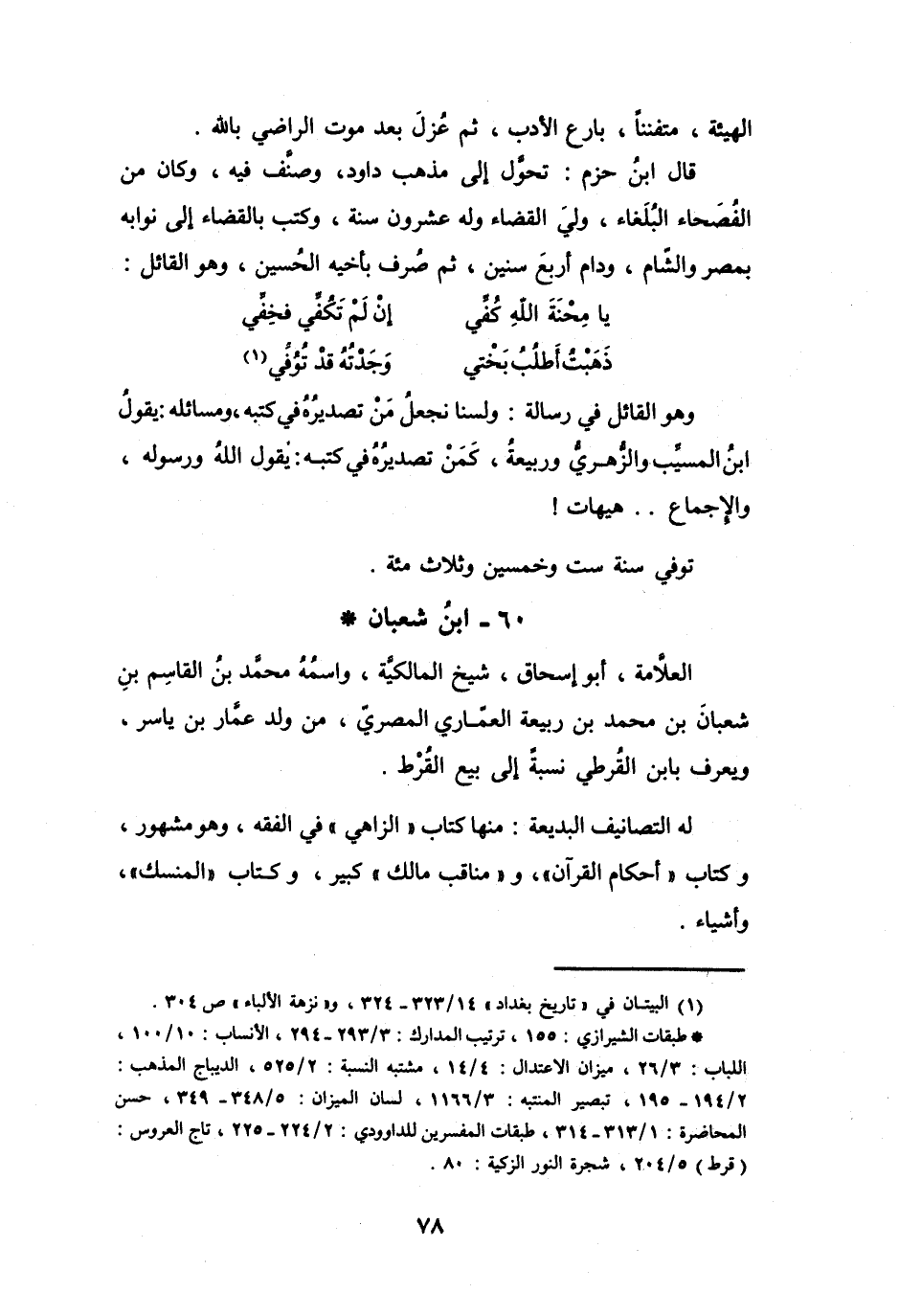 (1) البيتان في " تاريخ بغداد " 14 / 323 - 324، و" نزهة الالباء " ص 304.