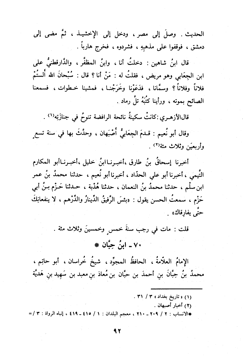 70 - ابْنُ حِبَّانَ مُحَمَّدُ بنُ حِبَّانَ بنِ أَحْمَدَ التَّمِيْمِيُّ *